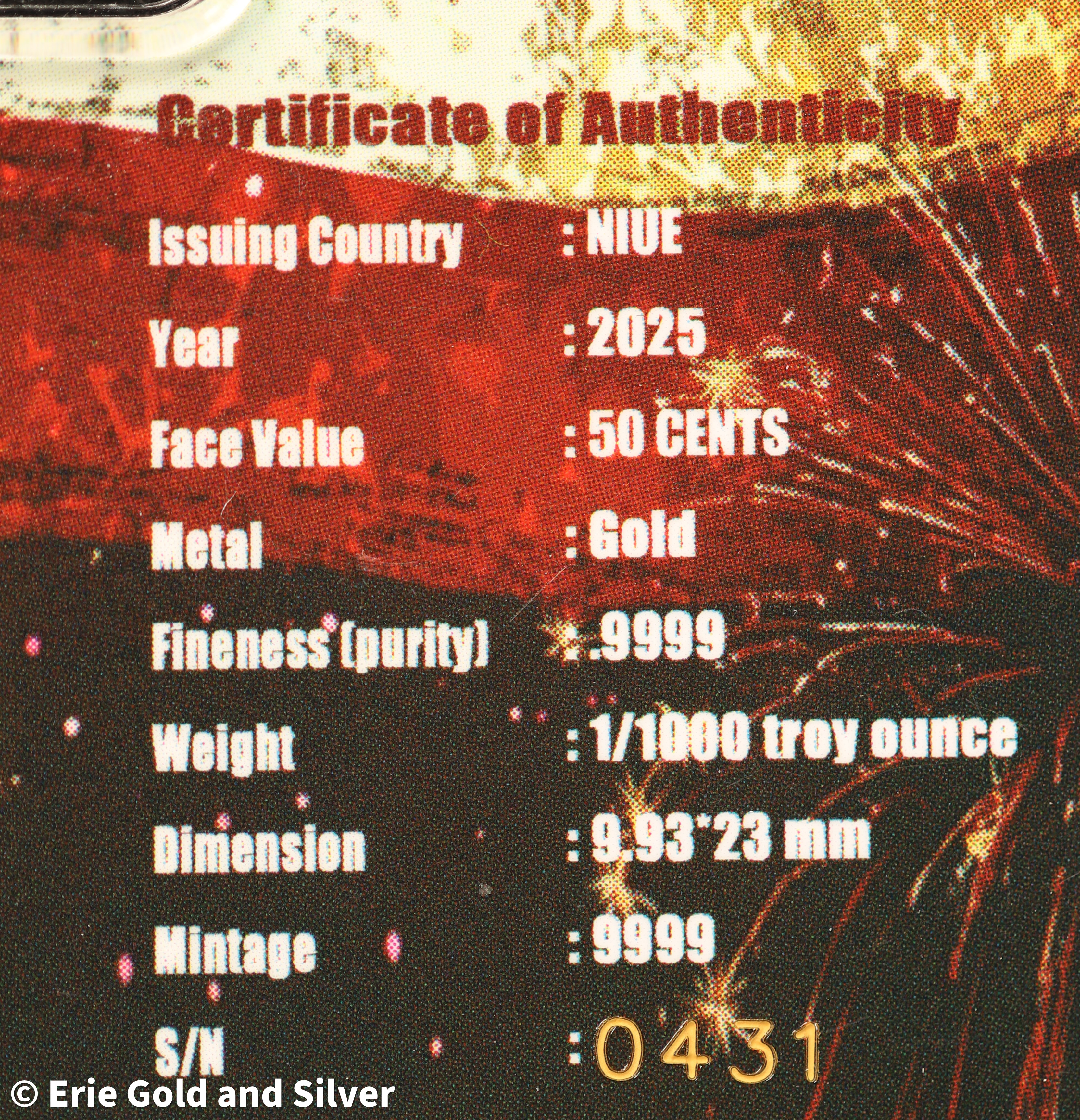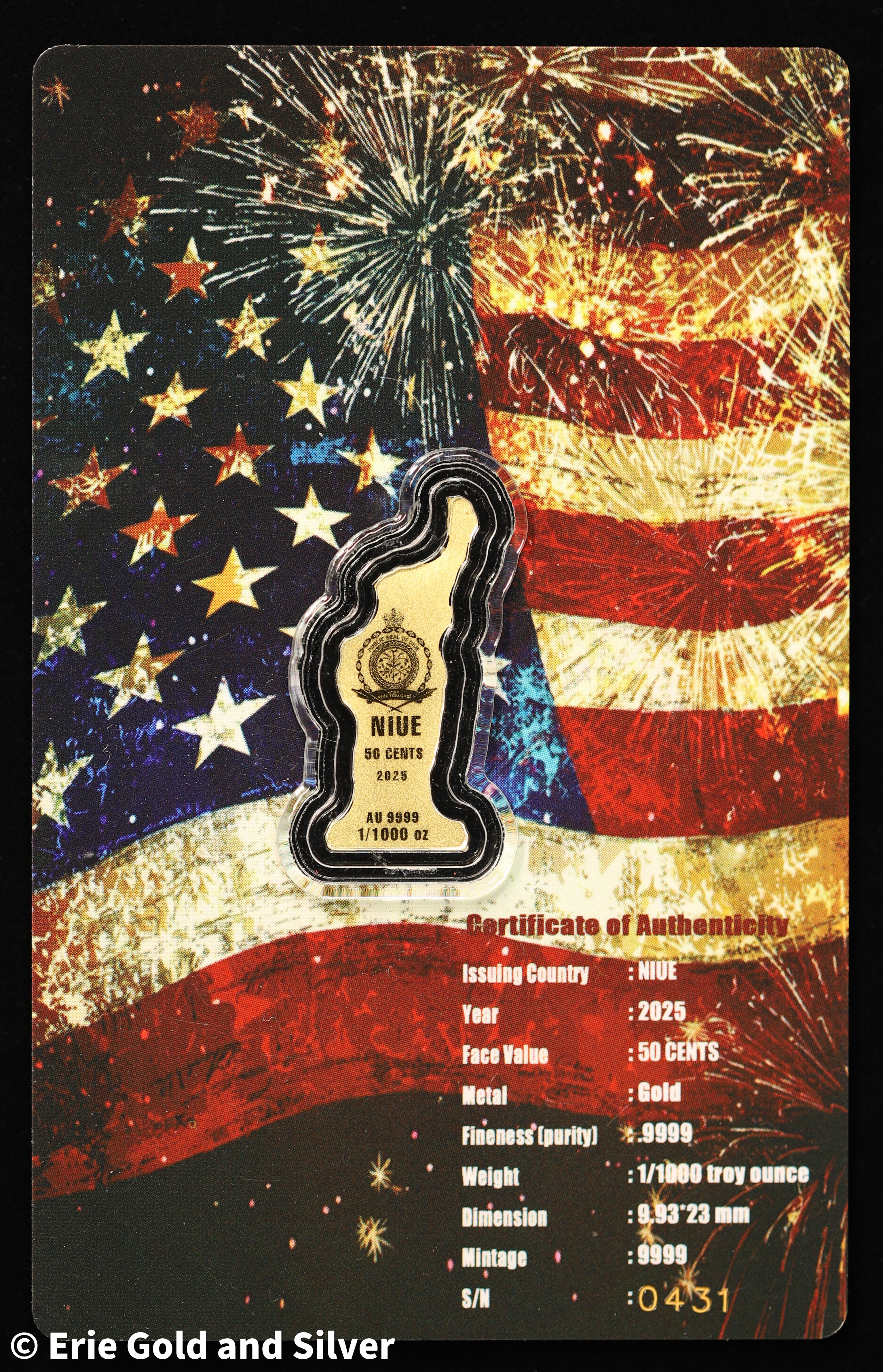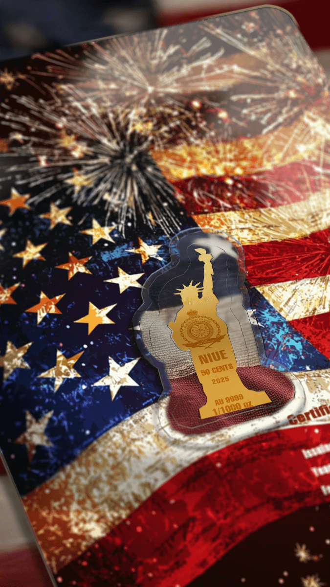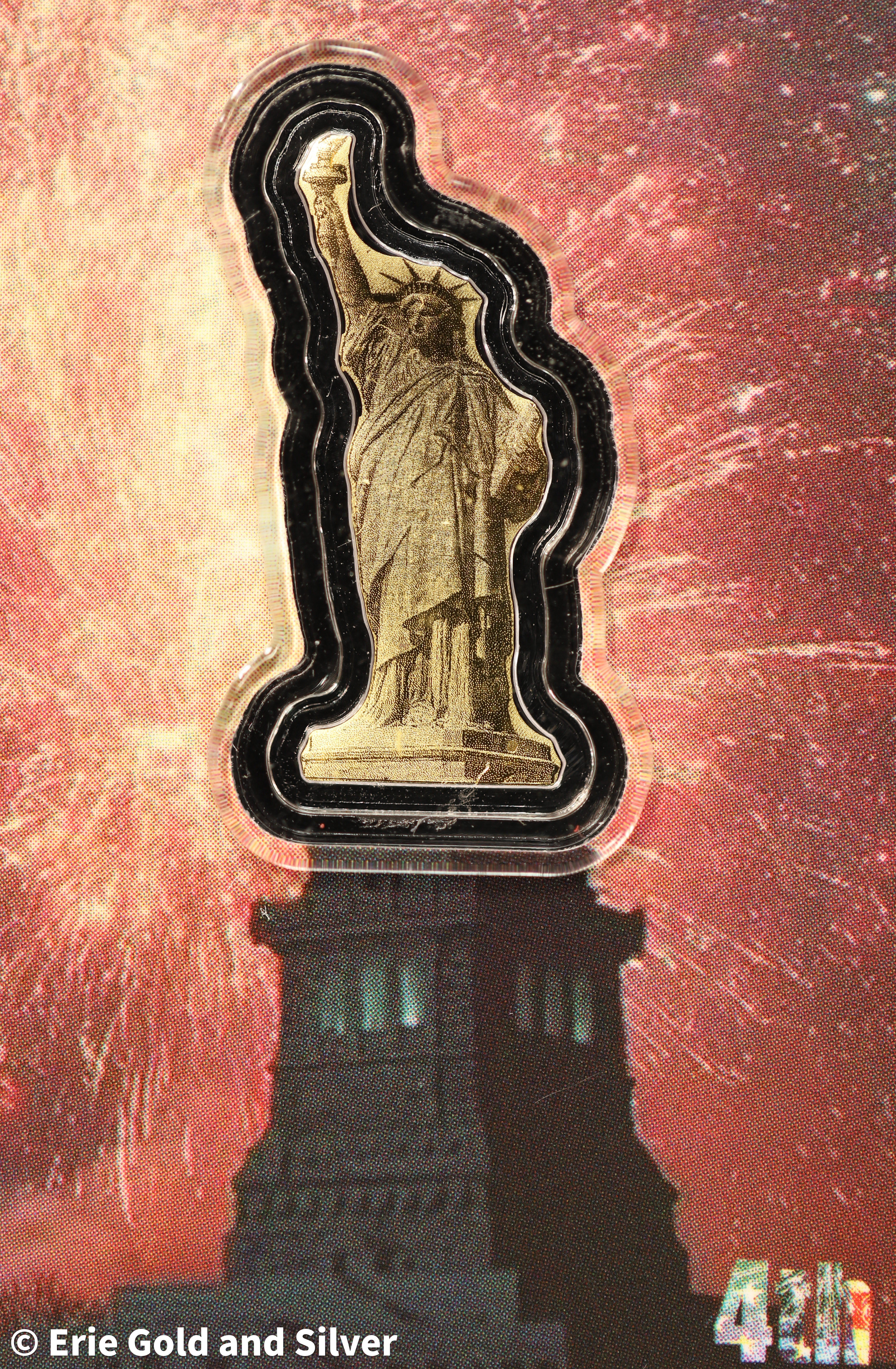 Celebrate freedom in miniature with the 2025 Niue 4th of July Statue of Liberty gold coin, expertly struck from 1/1000 oz of .9999 fine gold. Shaped like Lady Liberty herself, this officially licensed coin honors American independence with detailed design in an ultra-miniature format. Perfect for patriotic collectors, novelty gold enthusiasts, or as a unique gift, this tiny treasure proves that even the smallest coin can carry big symbolic weight.