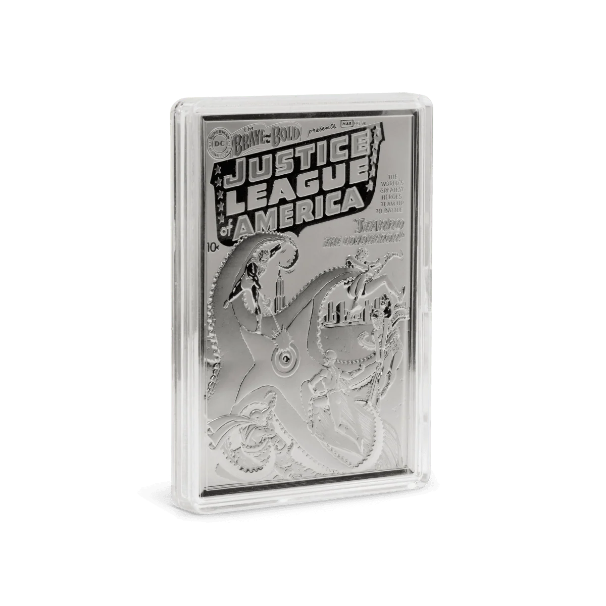 Honor a cornerstone of comic history with the 2025 Niue DC Comics The Brave and the Bold #28 3 oz Silver Proof Coin. Struck in .999 fine silver, this officially licensed release recreates the iconic cover that introduced the Justice League of America. With a flawless proof finish and bold colorized artwork, this 3 oz collectible comes housed in Original Government Packaging (OGP)—a striking tribute to DC’s legendary heroes and Silver Age storytelling.