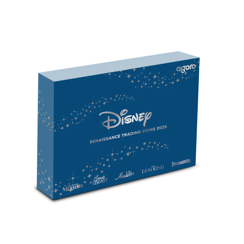 Discover the magic of Disney with the 2025 Niue Disney Renaissance Silver Trading Card Coins SEALED BOX. Each unopened box offers a chance at beautifully crafted .999 fine silver trading card–style coins celebrating the iconic films of Disney’s Renaissance era. Perfect for collectors who love the thrill of the unknown, this sealed box preserves its mystery, charm, and collectible value.