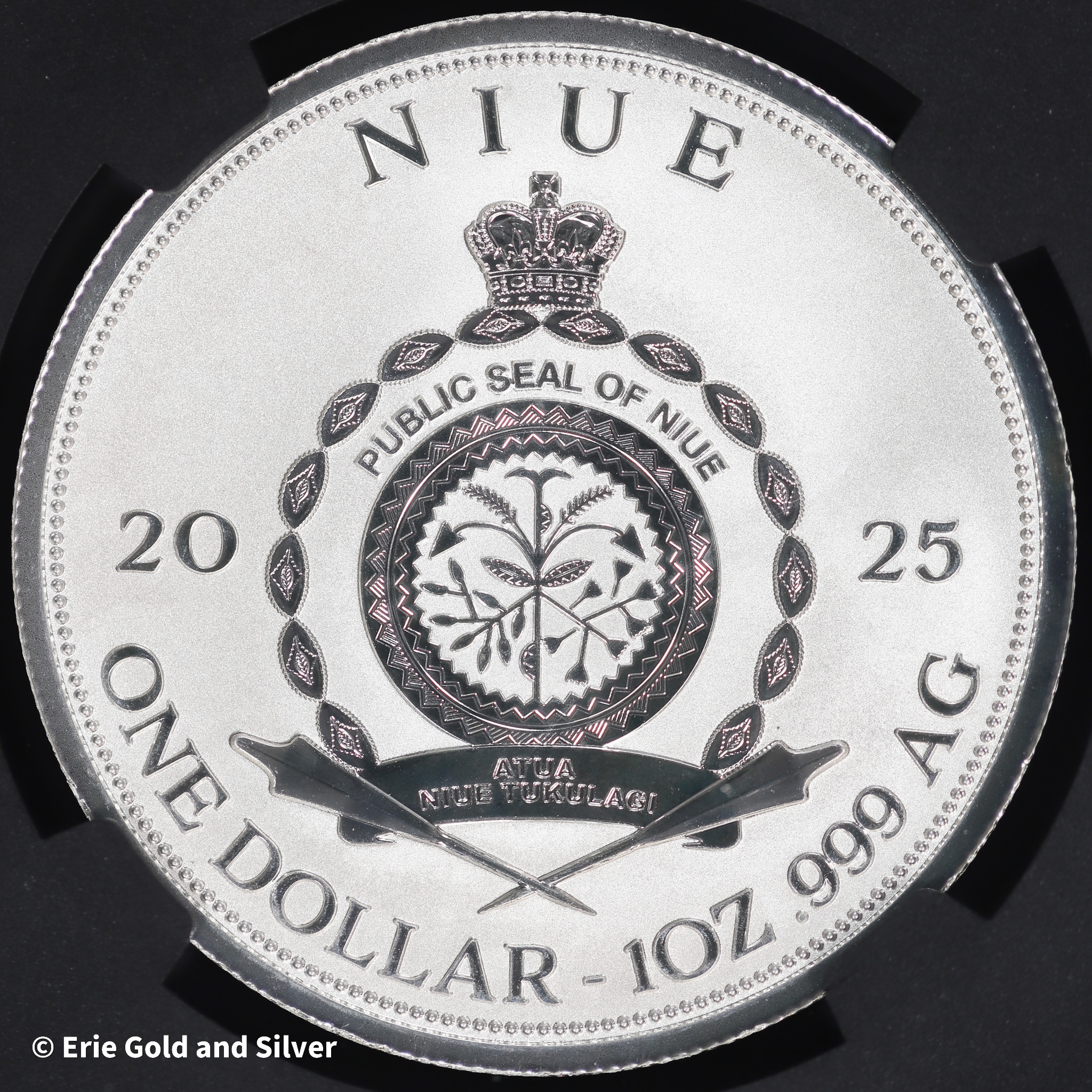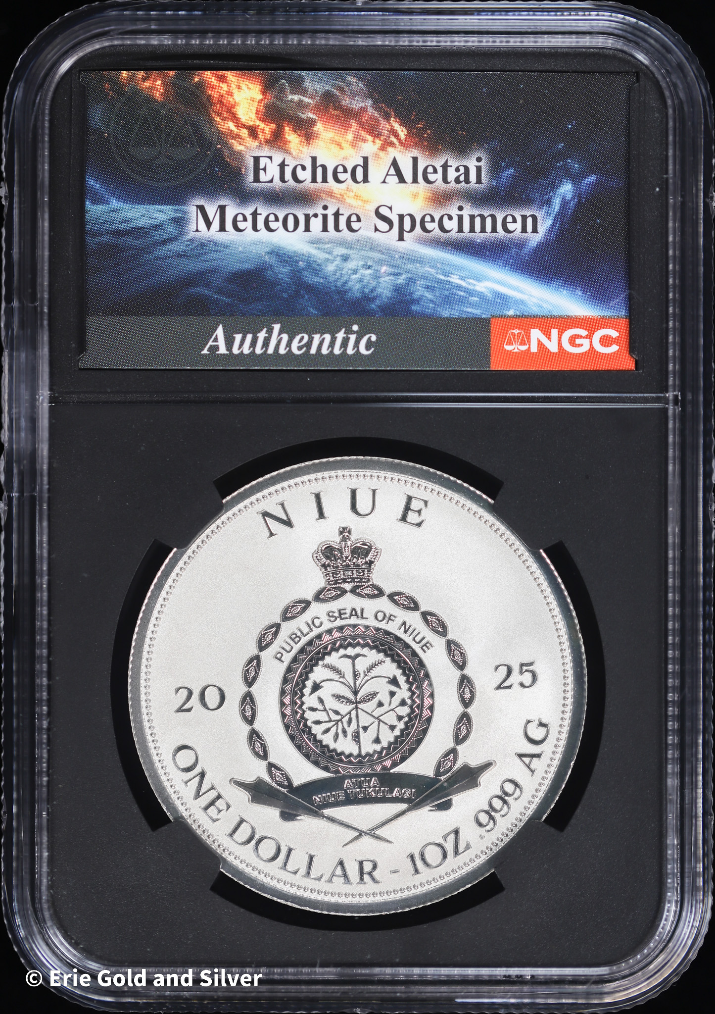 2025 Niue Extinction 1 oz Silver Reverse Proof w/ Etched Aletai Meteorite Specimen NGC PR 70