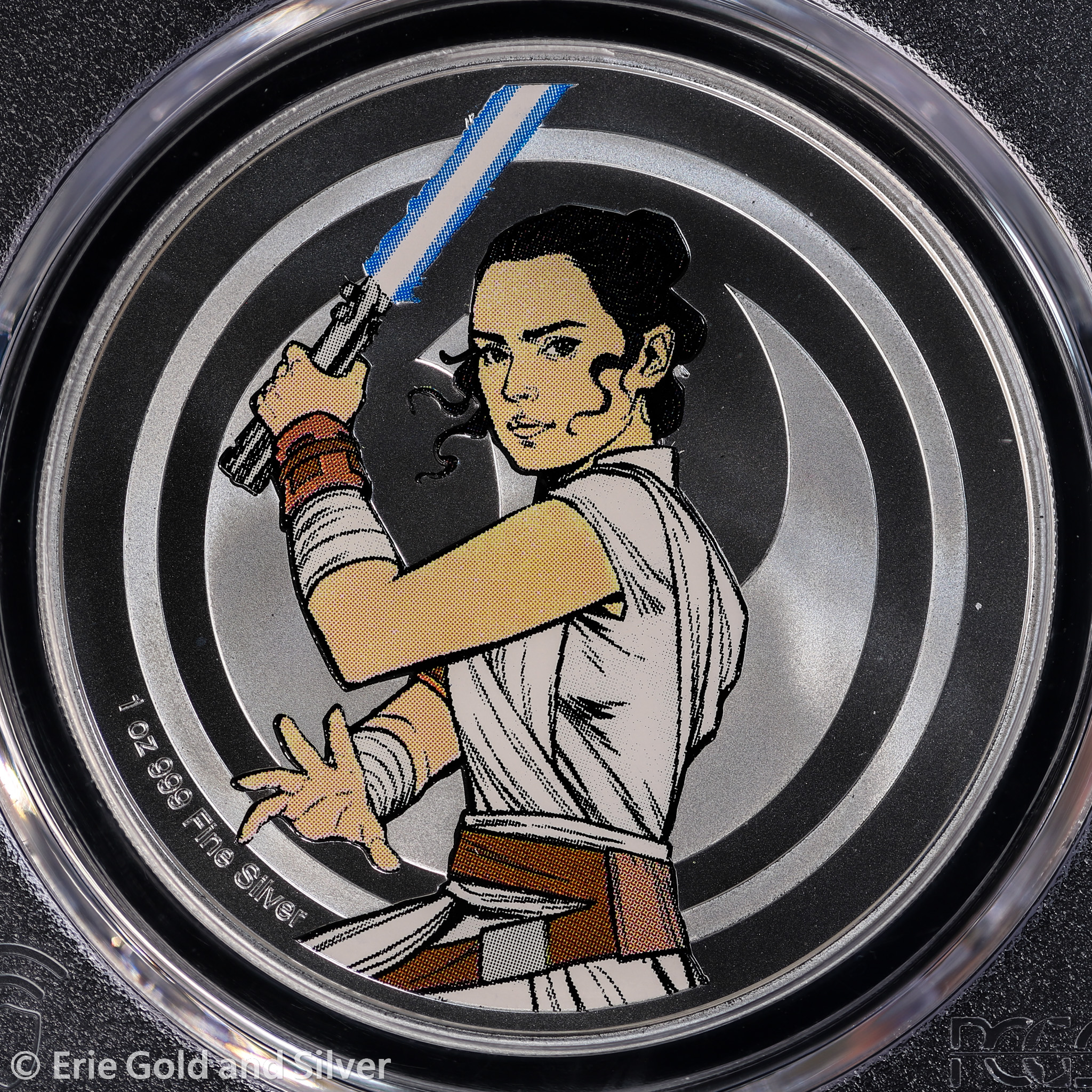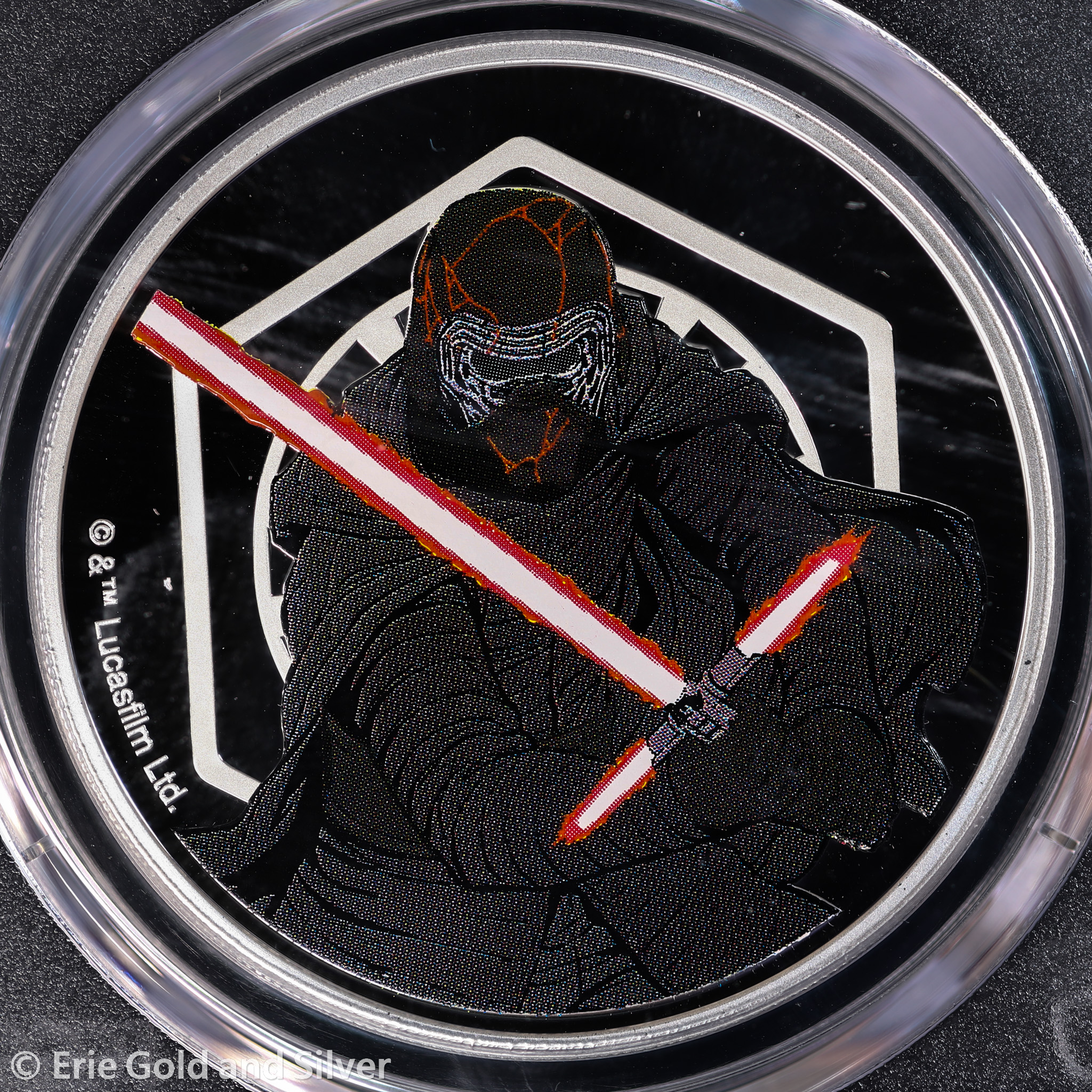 For sale is a 2025 Niue Star Wars Rey vs Kylo Ren 1 oz Silver Proof Colorized Medal. Certified / graded by PCGS at PR 70 DCAM.