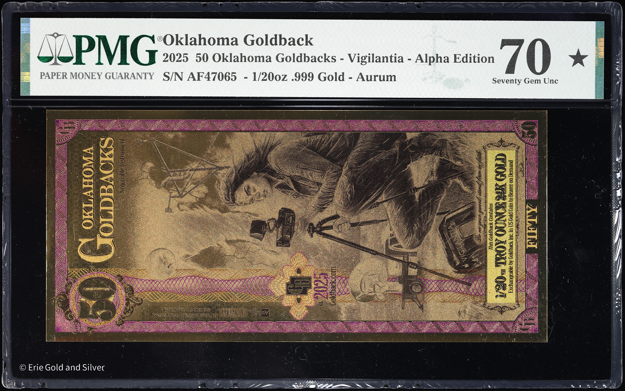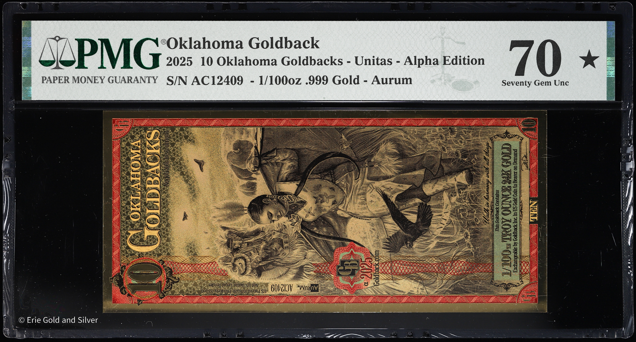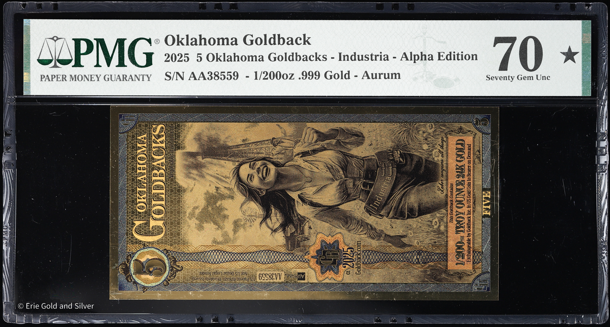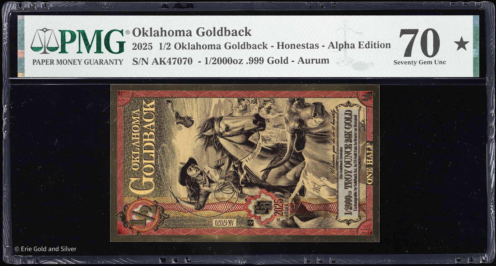 The Oklahoma Goldback is a voluntary, gold-backed currency containing 24-karat gold. Designed for use in Oklahoma, these notes provide a practical way to own and spend real gold. Accepted by participating businesses and sought after by collectors, Goldbacks offer a unique and tangible form of sound money.