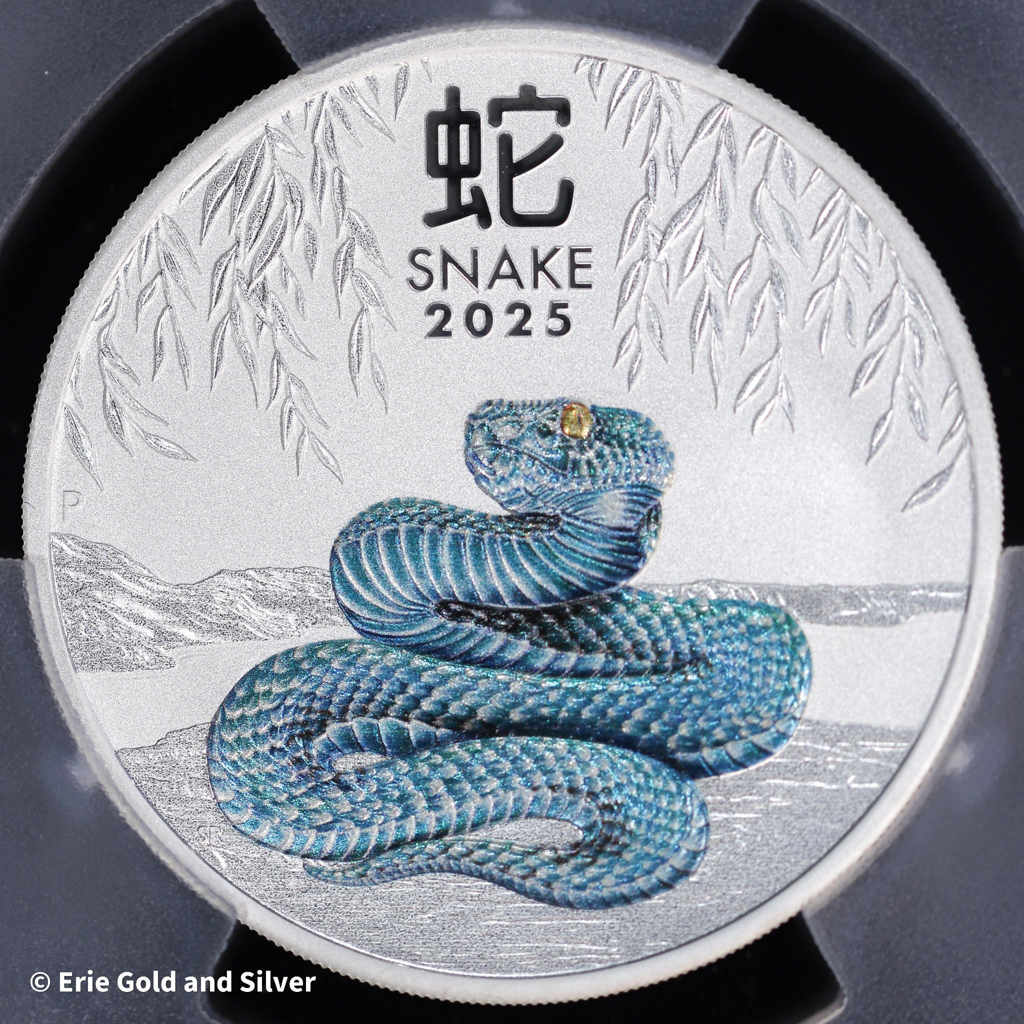 2025-P Australia Year of the Snake 2 oz Silver Colorized Coin PCGS MS 70