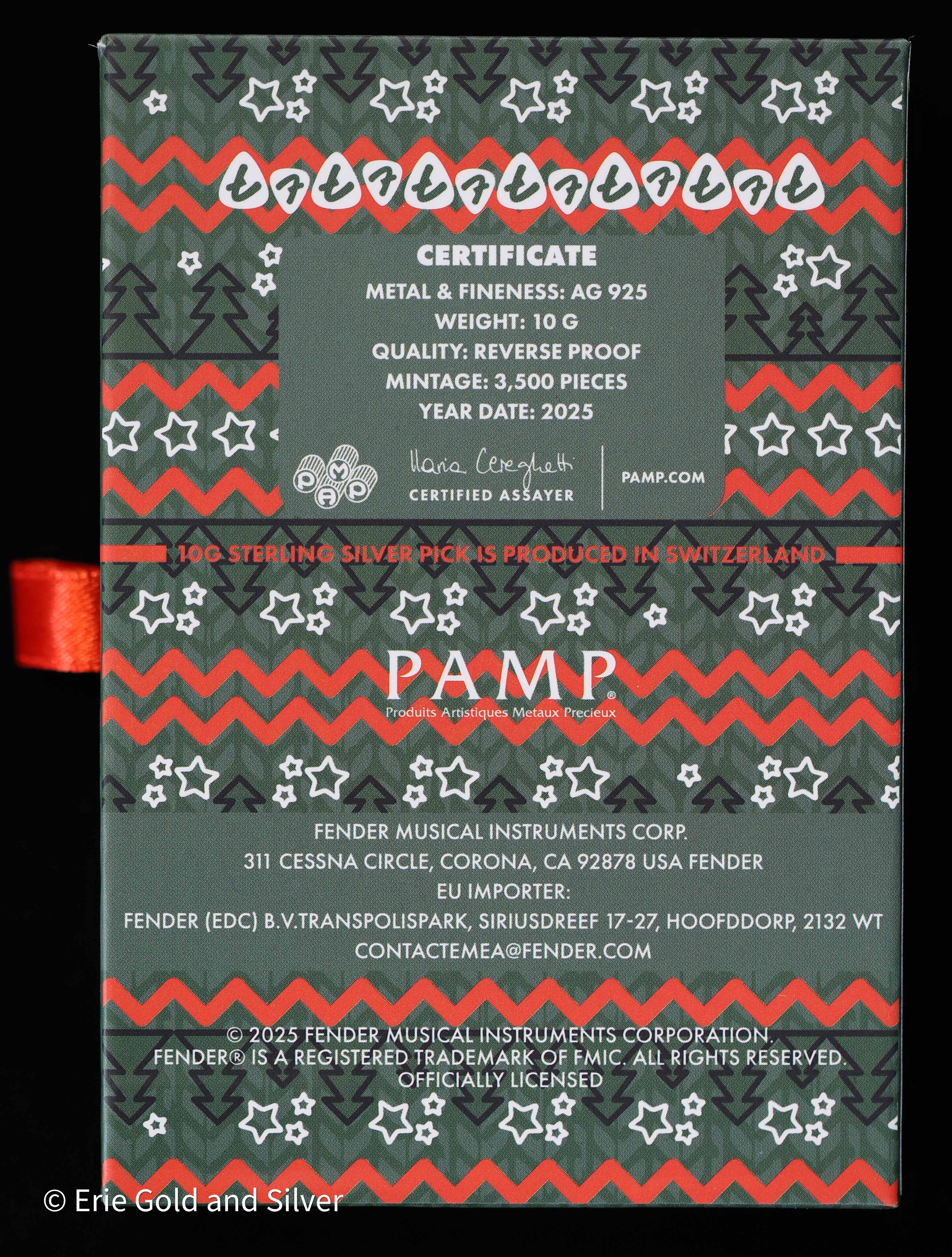 2025 PAMP Fender Christmas 10 Gram Sterling Silver Guitar Pick