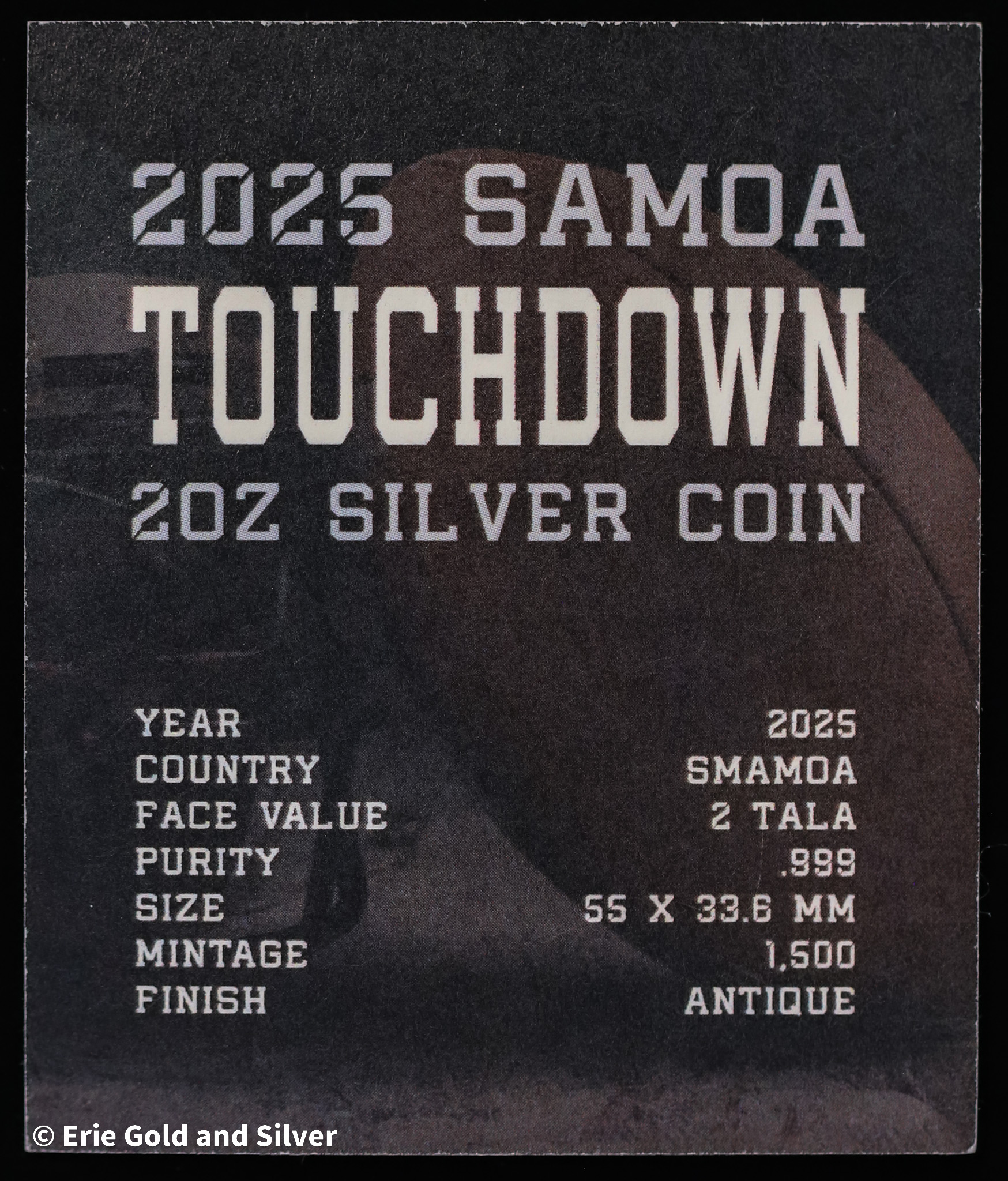 2025 Samoa Touchdown 2 oz Silver Coin