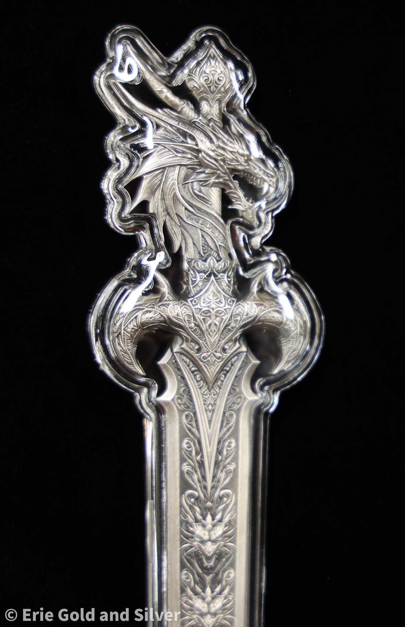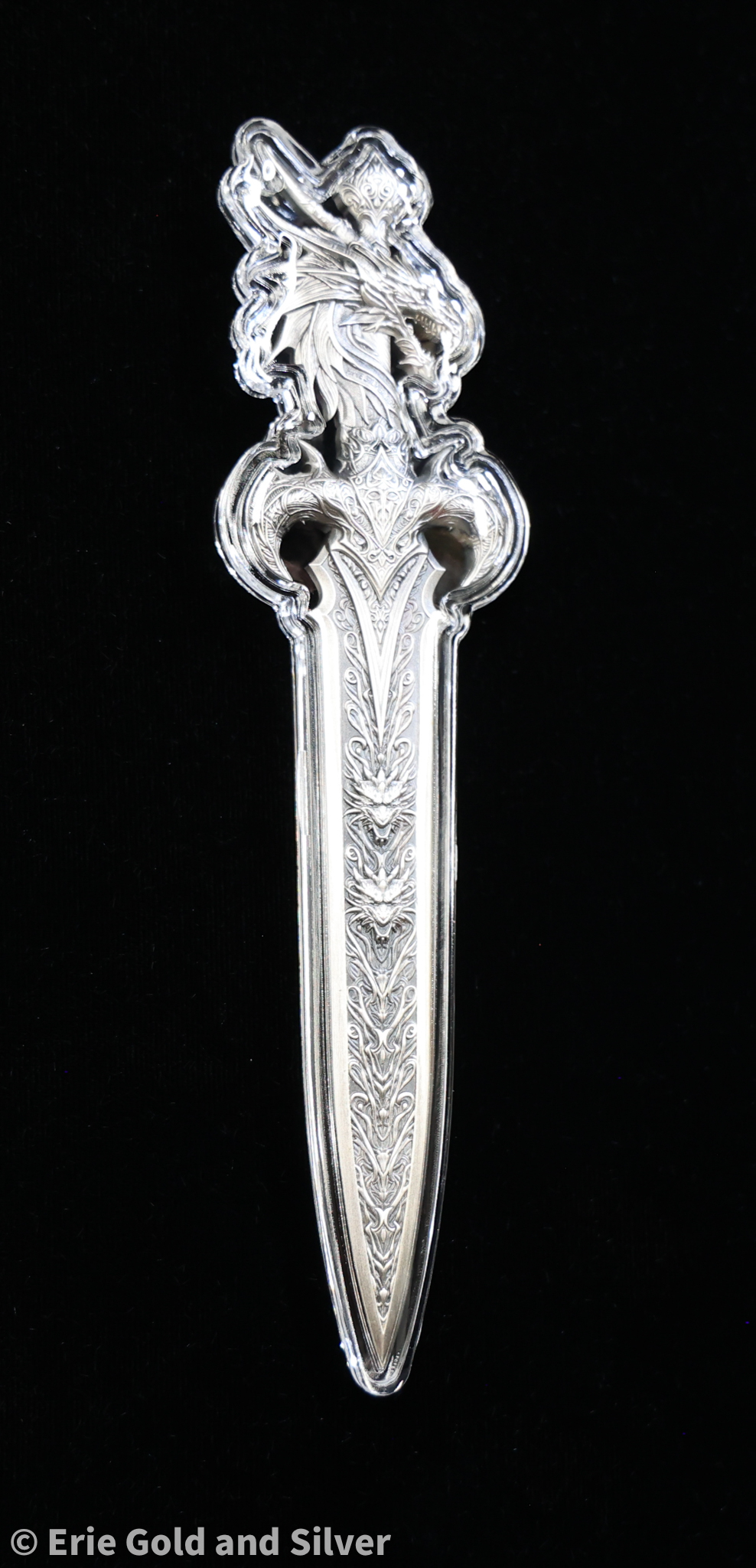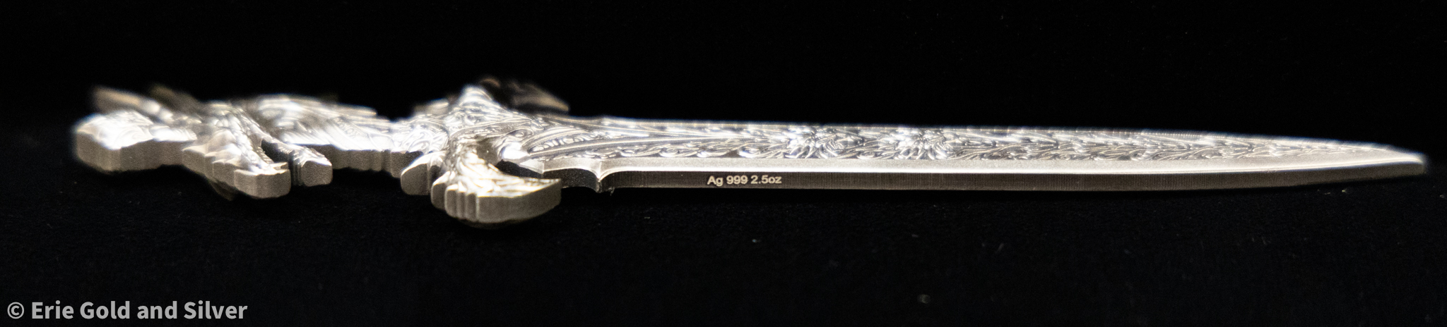 For sale is a South Korea 2.5 oz Antiqued Shaped Sword in Capsule