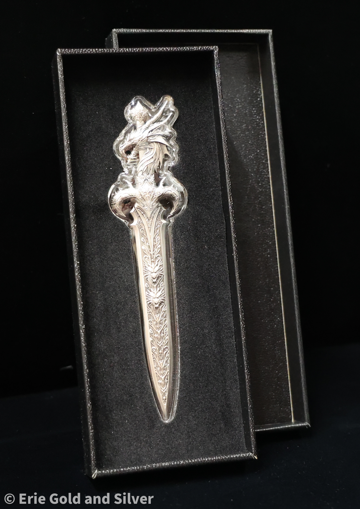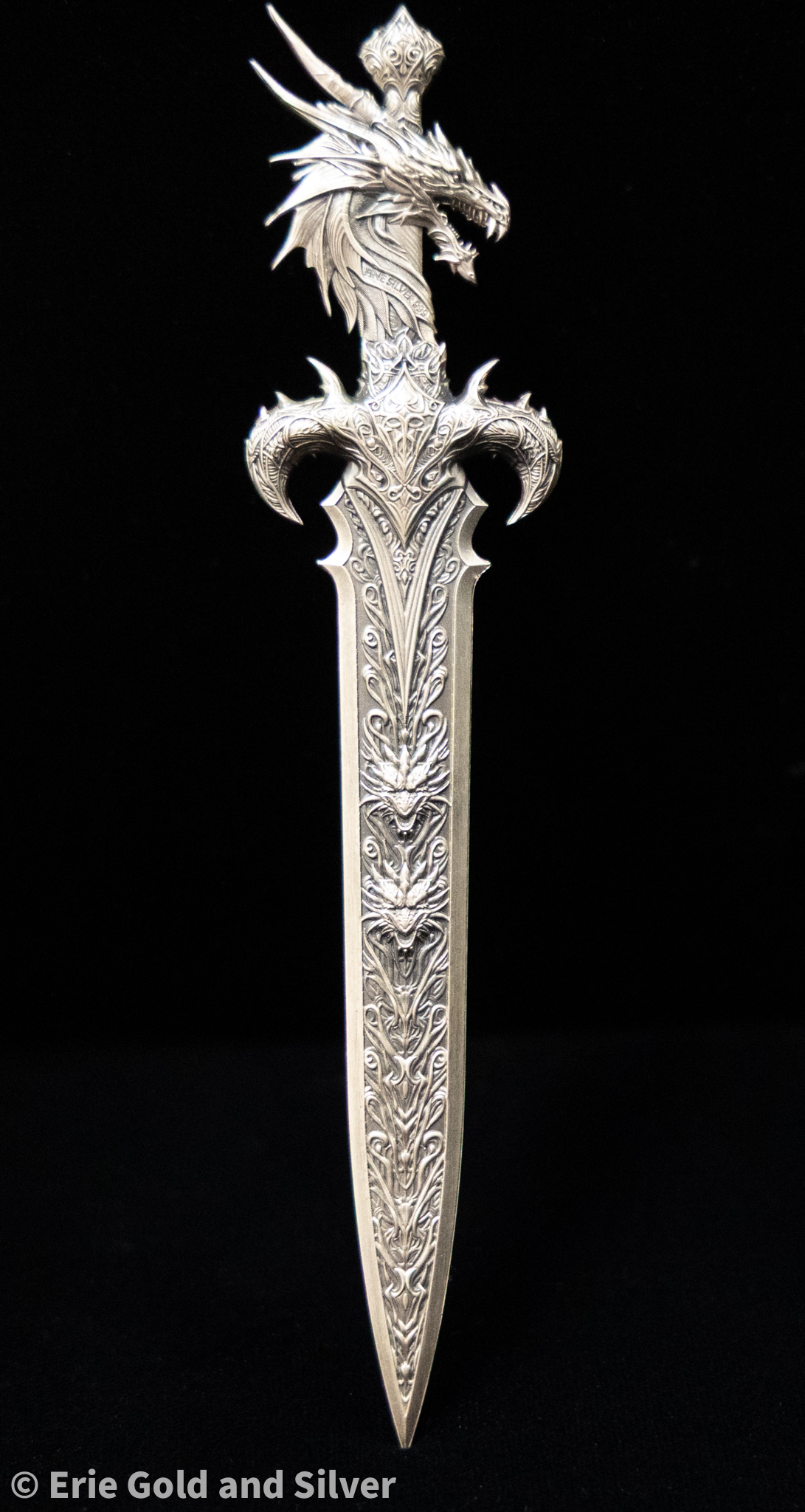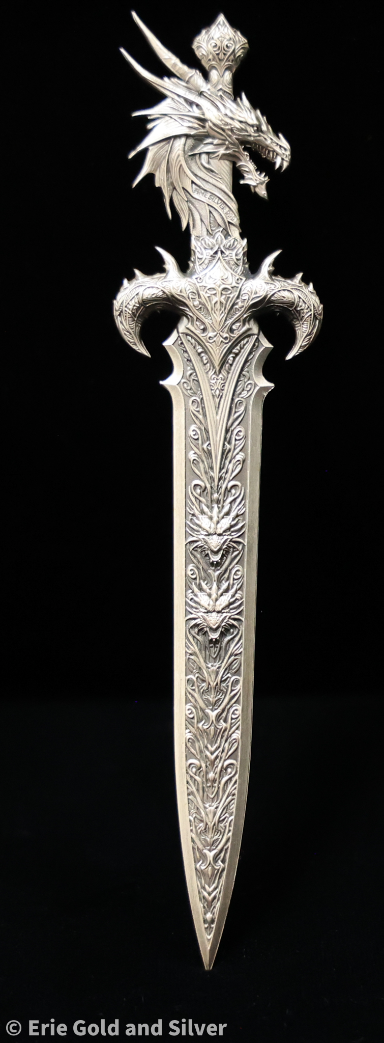 For sale is a South Korea 2.5 oz Antiqued Shaped Sword in Capsule