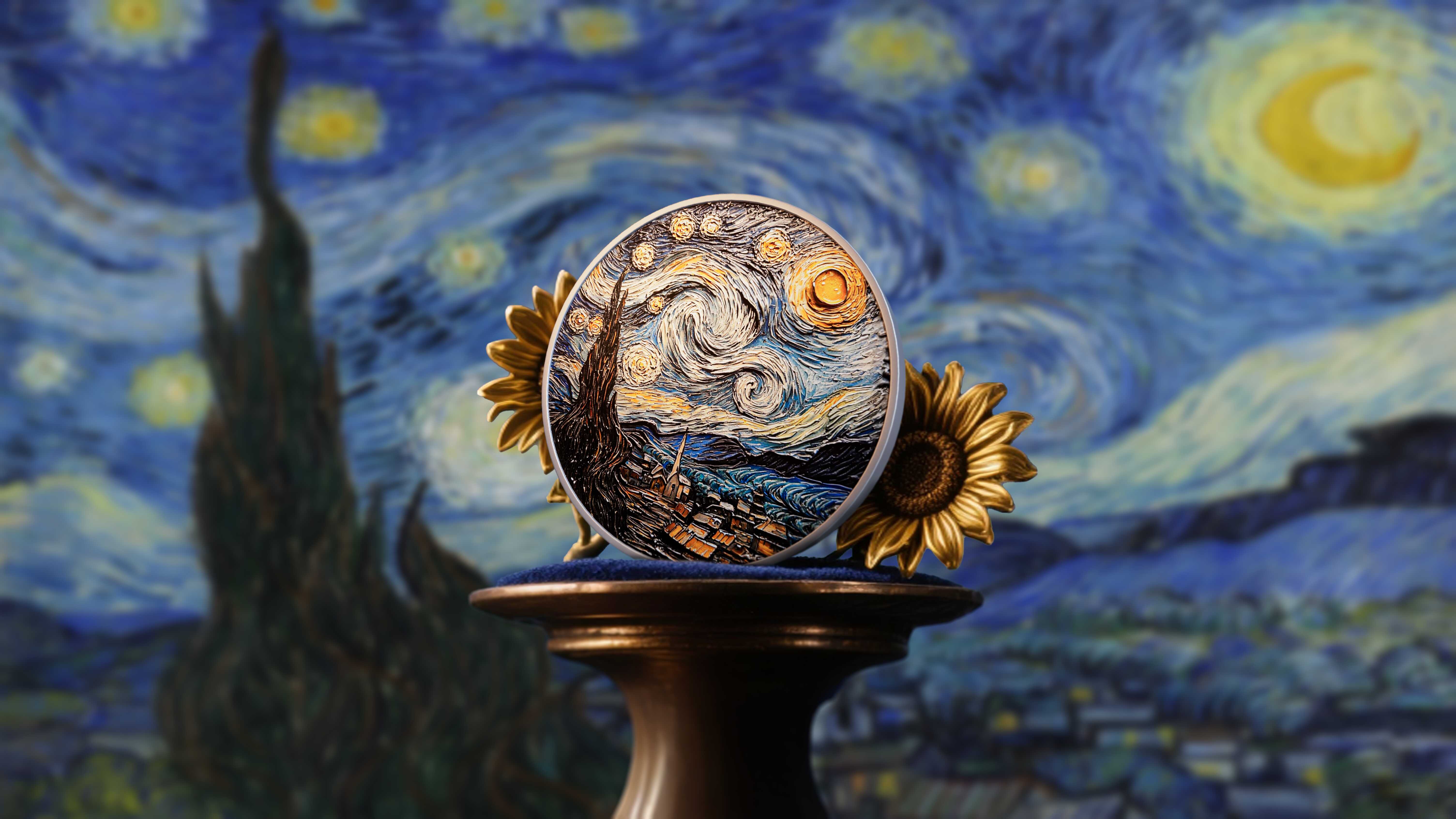 Bring one of the world’s most celebrated masterpieces into your collection with the 2025 Starry Night 2 oz Silver Coin, enhanced with a copper core for added depth and brilliance. Struck from .999 fine silver, this officially licensed release showcases Vincent van Gogh’s timeless Starry Night in vibrant color and exquisite detail. Presented in its Original Government Packaging, this piece beautifully merges fine art with modern minting innovation, making it a must-have for collectors of silver, world art coins, and timeless cultural icons.