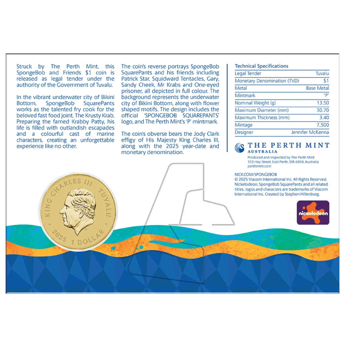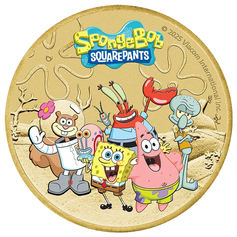 Issued by Tuvalu in 2025, this SpongeBob SquarePants – SpongeBob & Friends coin is struck in 13.5 grams of base metal and features the beloved animated characters in a collectible coin format. A fun addition for collectors of licensed cartoon coins, novelty issues, and SpongeBob memorabilia.