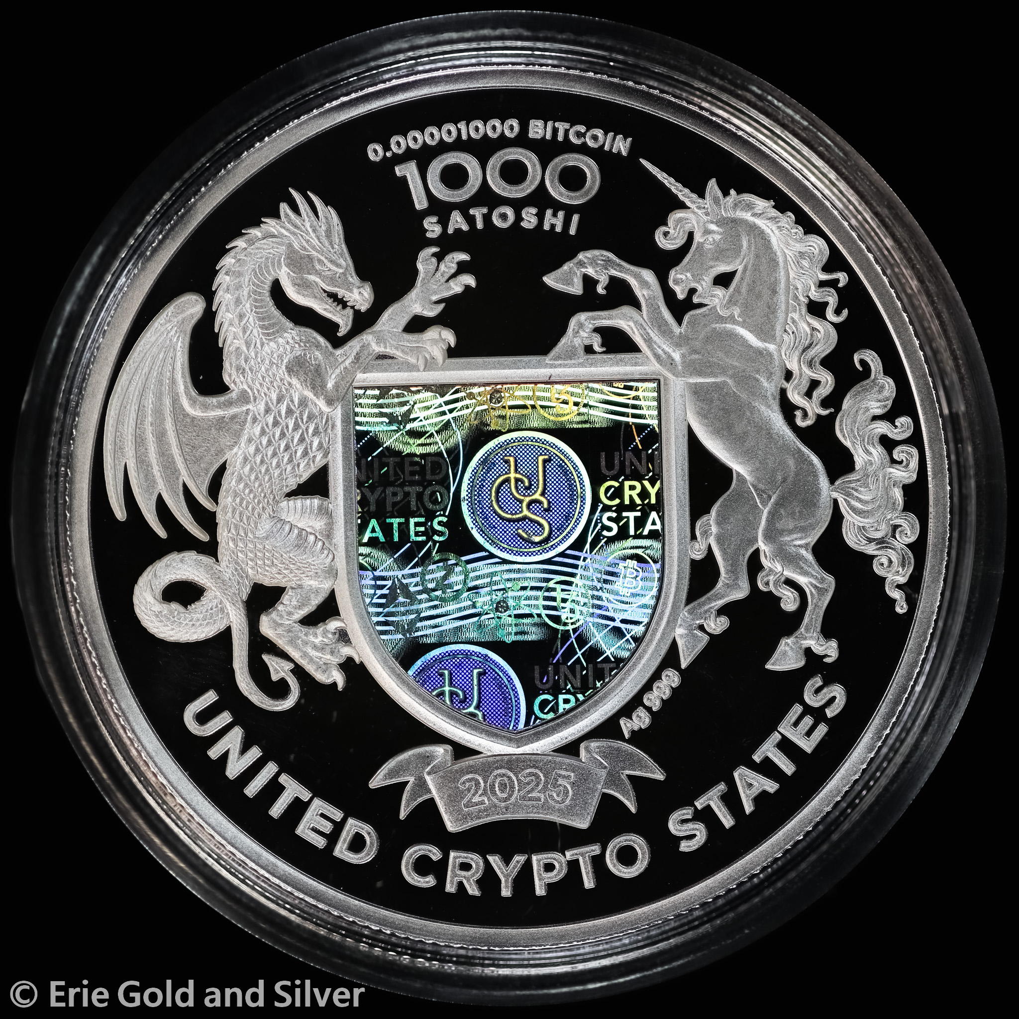 2025 United Crypto States American Buffalo 1 oz Silver Proof Holographic 1000 Satoshi Coin in OGP