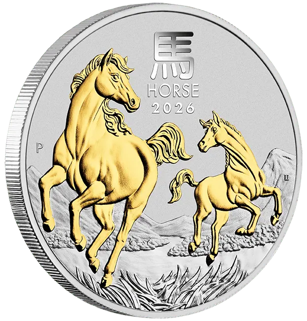 2026 $1 Australian Lunar Year of the Horse 1 oz Silver Gilded Coin