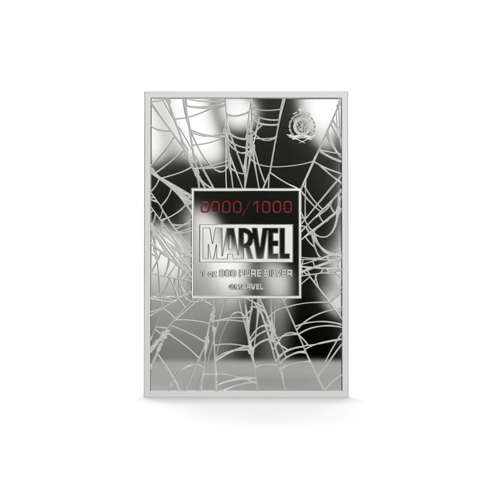 Featuring dynamic design elements inspired by the iconic origin of Spider‑Man, this coin is crafted to appeal to both Marvel fans and seasoned silver collectors alike. Its 1 oz silver weight ensures tangible bullion value, while the thematic presentation adds narrative depth.