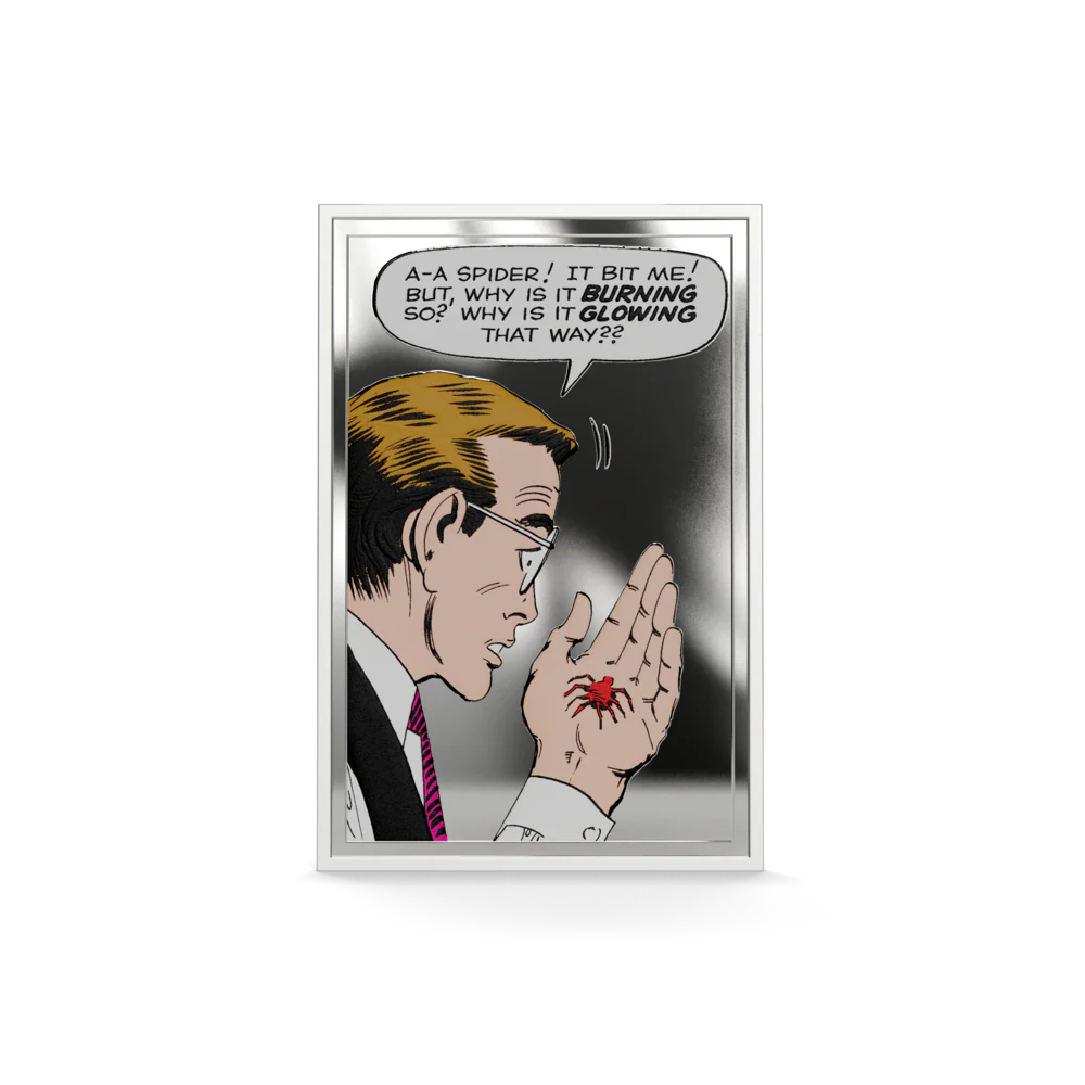 Issued in 2026, this $2 Marvel – The Bite That Changed Everything silver coin contains 1 oz of fine silver and captures the pivotal moment that launched a superhero legend. Officially licensed and released under legal tender, this coin blends comic-book storytelling with collectible precious metal appeal.