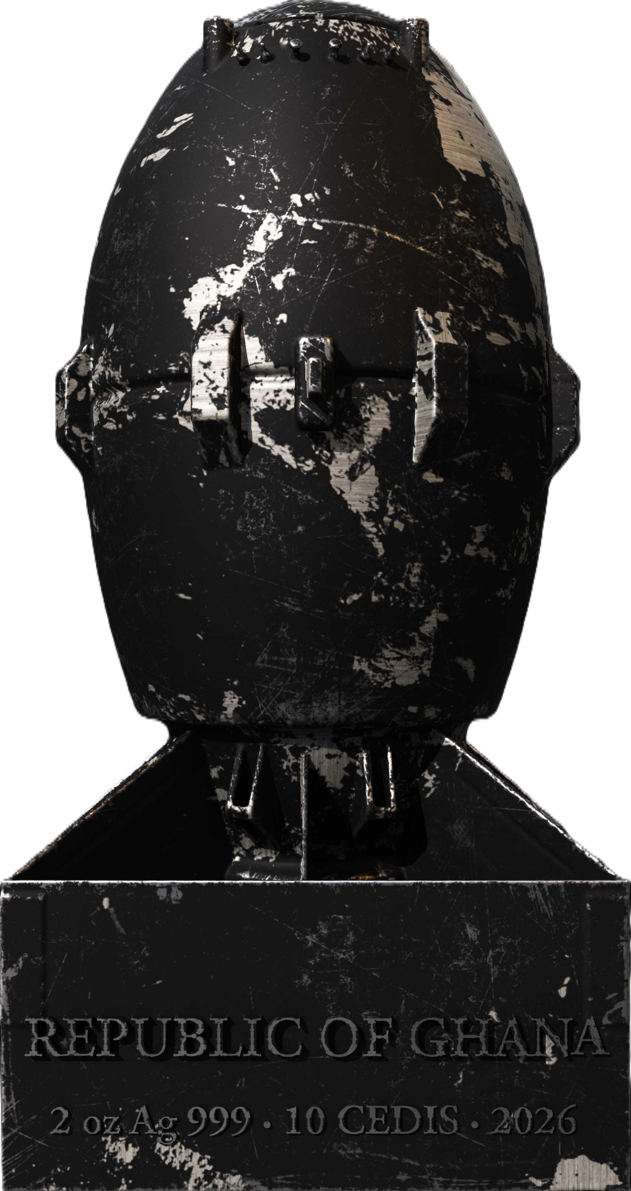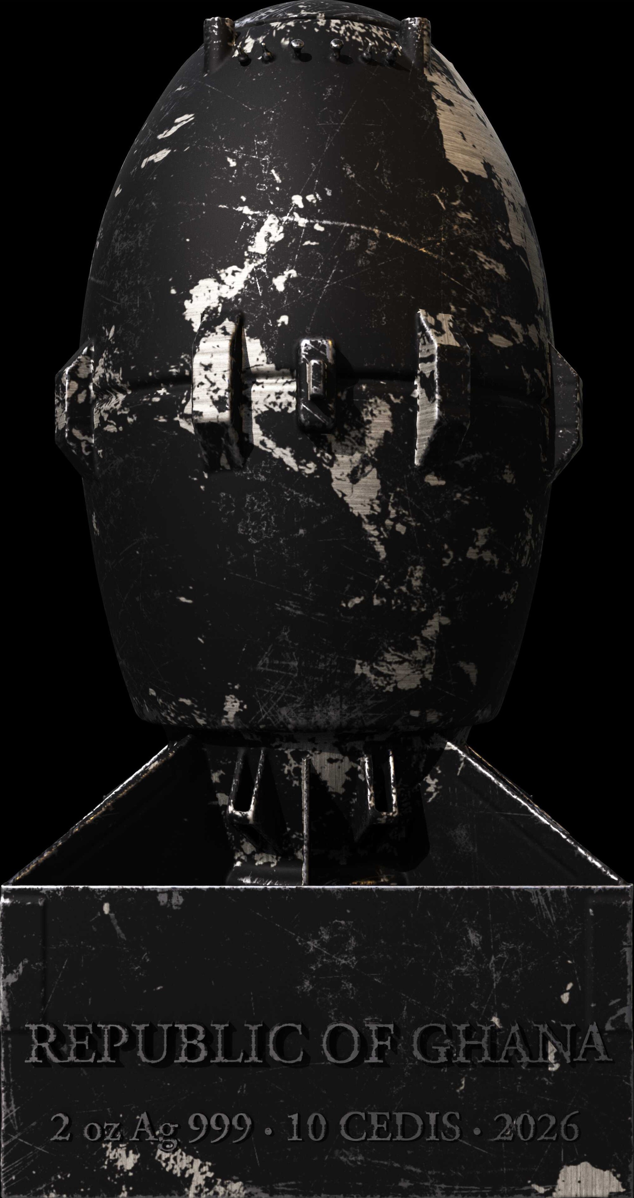 The 2026 Republic of Ghana 2 oz Antique Silver Atomic Bomb Coin delivers a powerful fusion of history and artistry. Struck from 2 ounces of .999 fine silver in antique finish, this high-relief design captures the destructive force and historical significance of the atomic age. Issued by the Republic of Ghana, this limited-edition piece reflects both innovation in minting and the sobering impact of human technological achievement—a striking addition for history enthusiasts and serious silver collectors alike.
