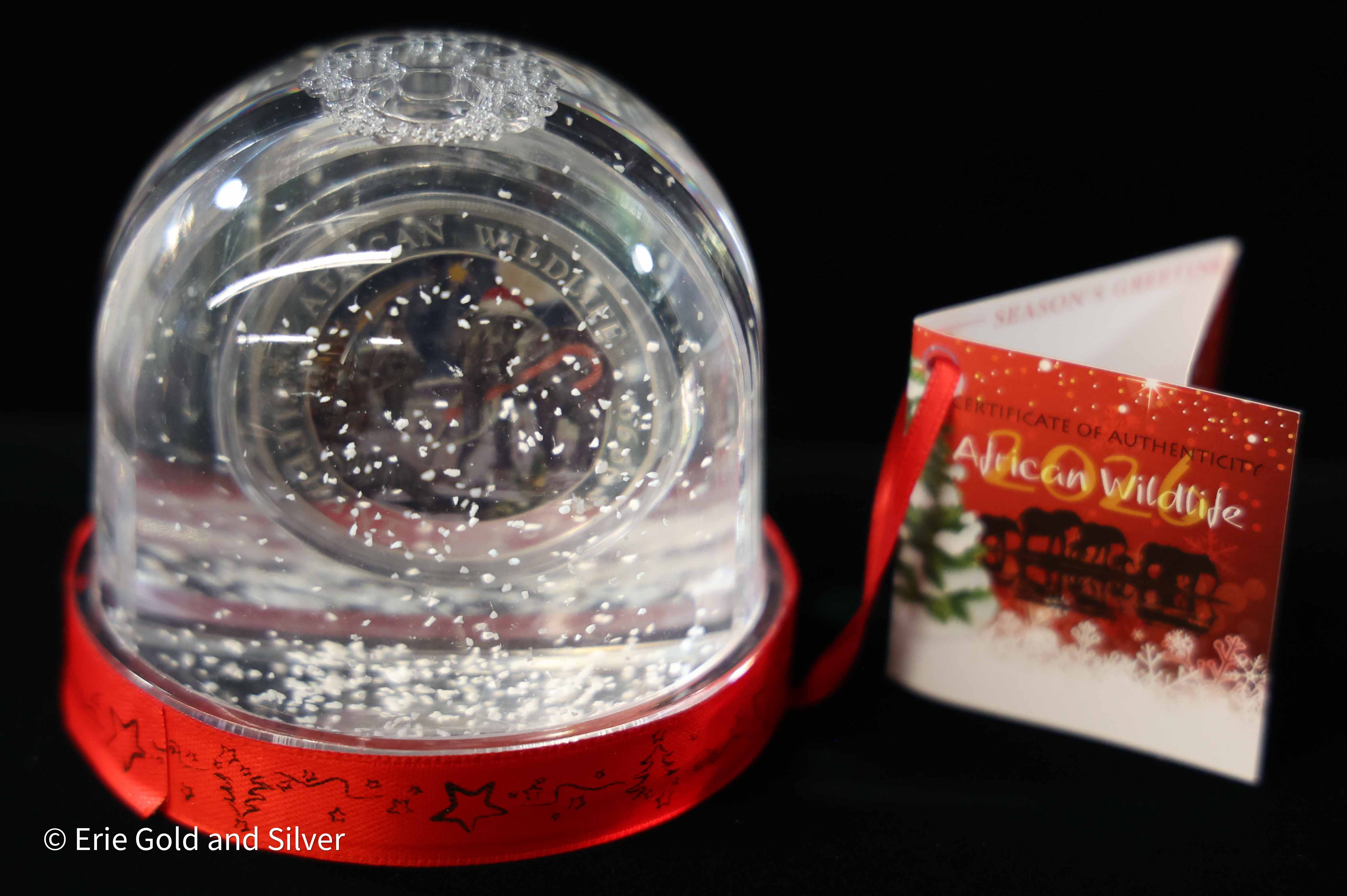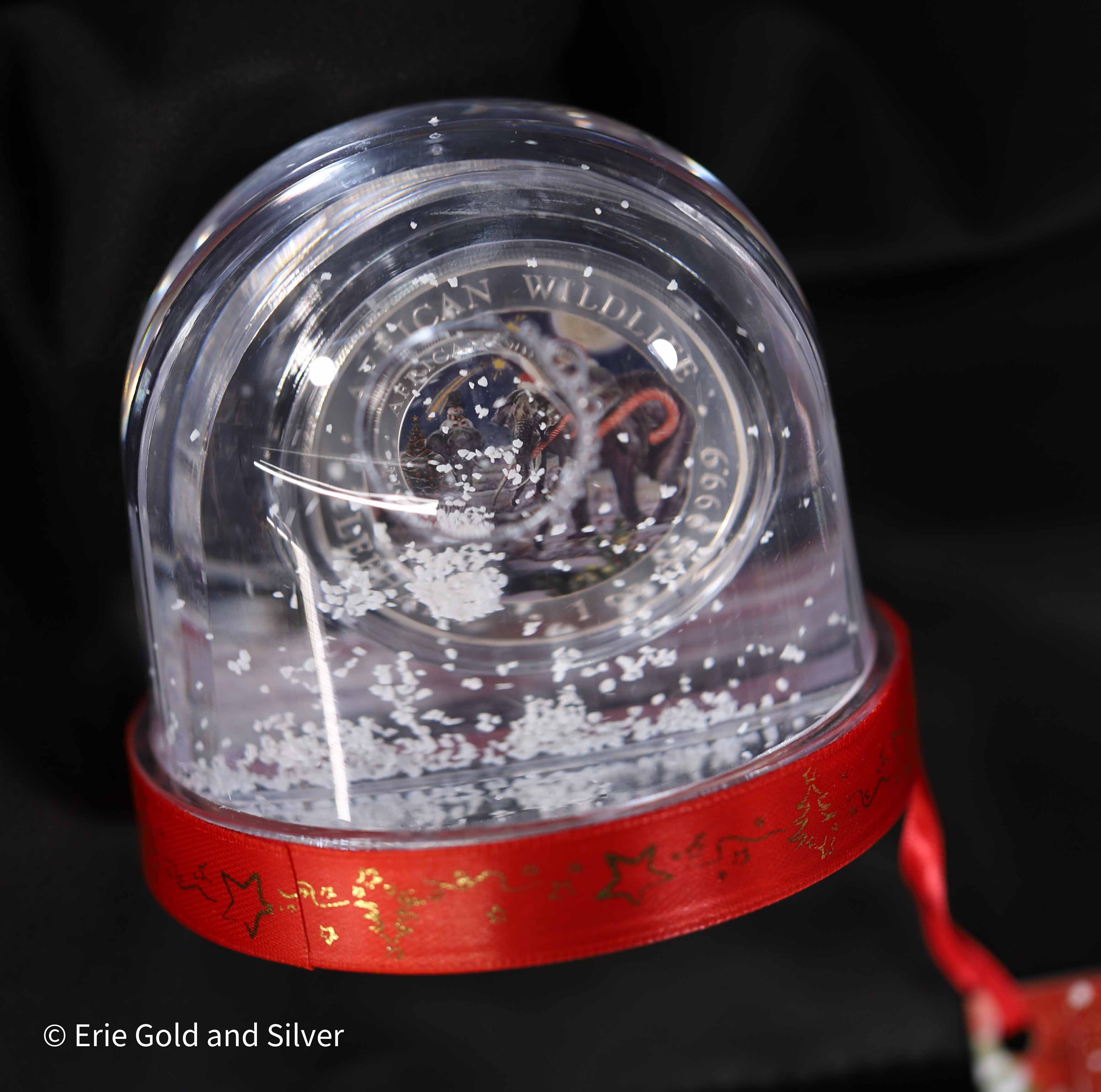 2026 Somalia Colorized Elephant 1 oz Silver in Christmas Snowglobe