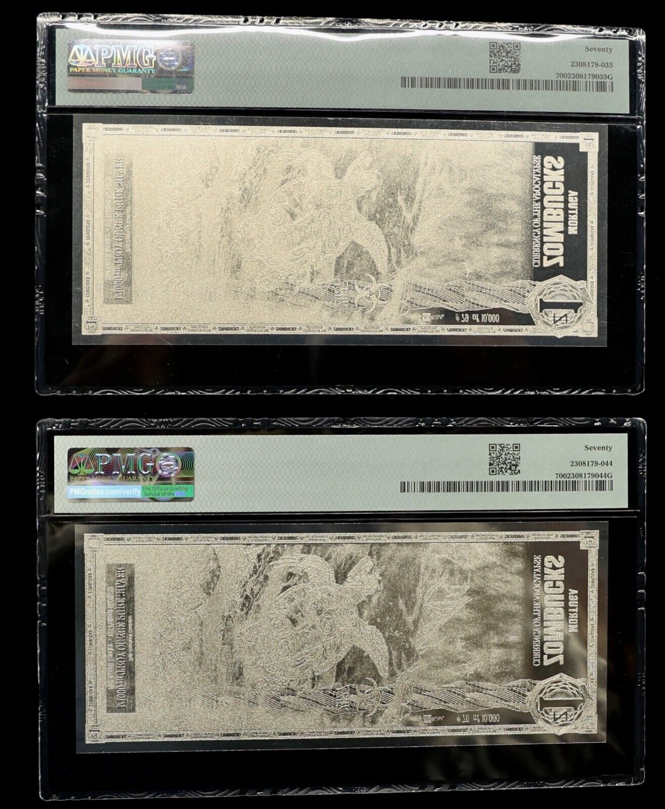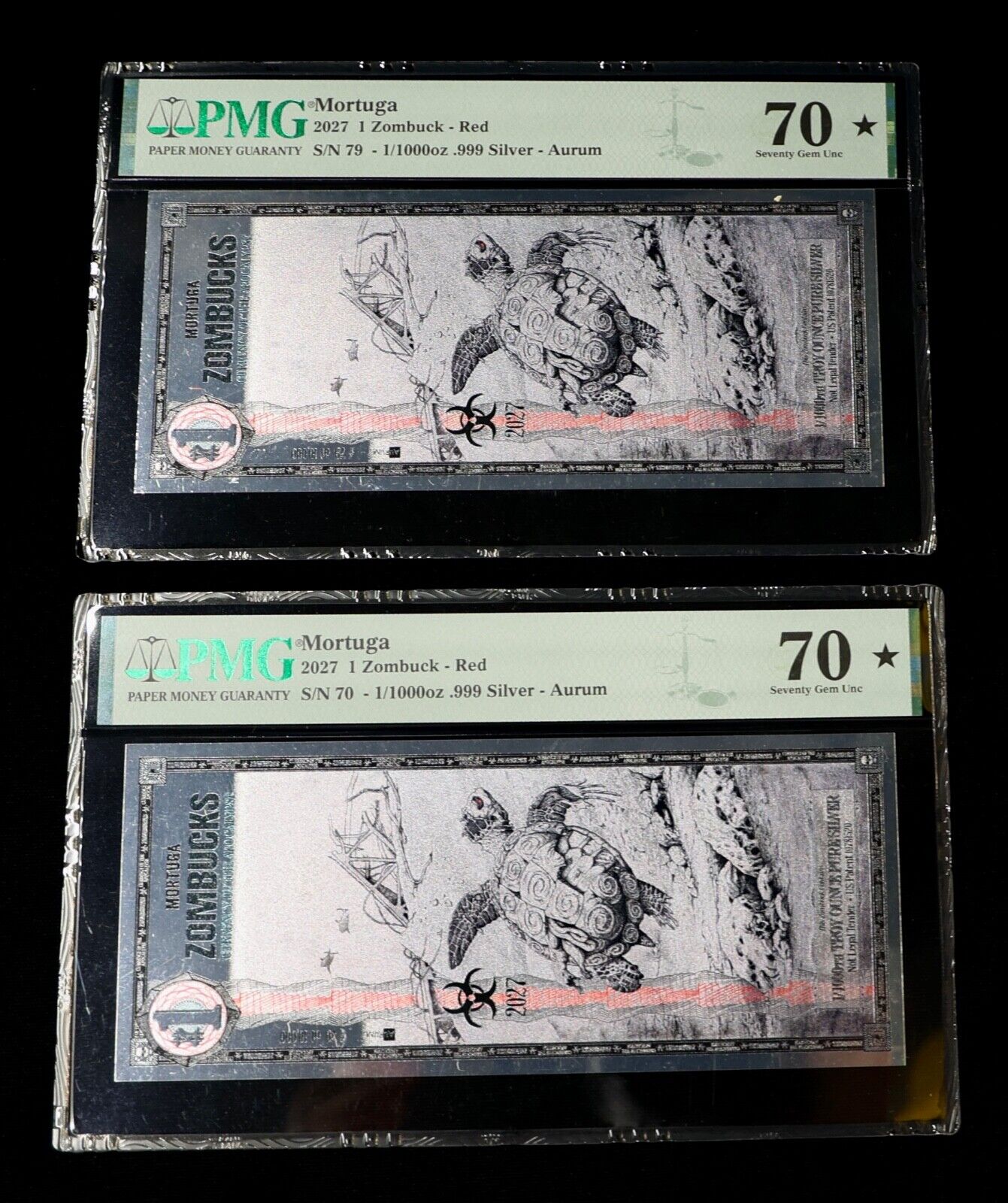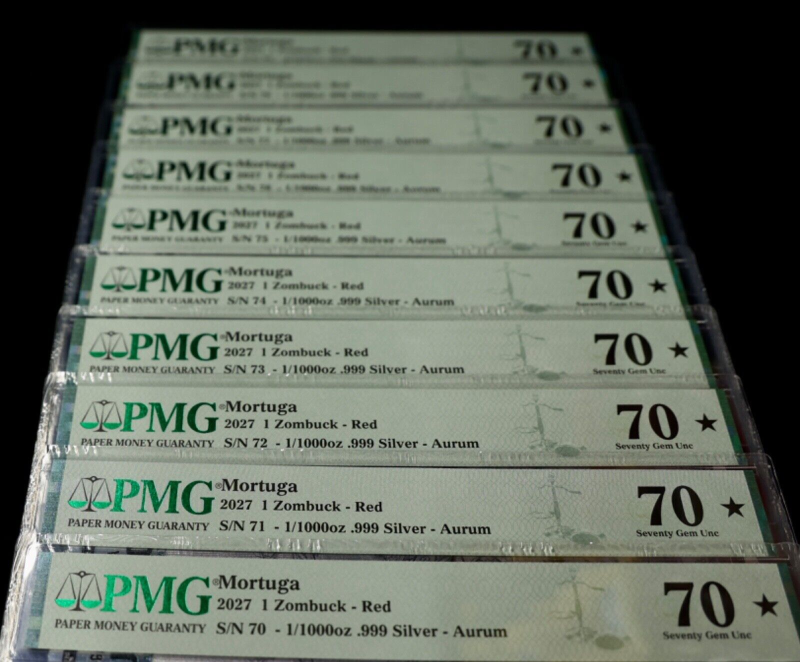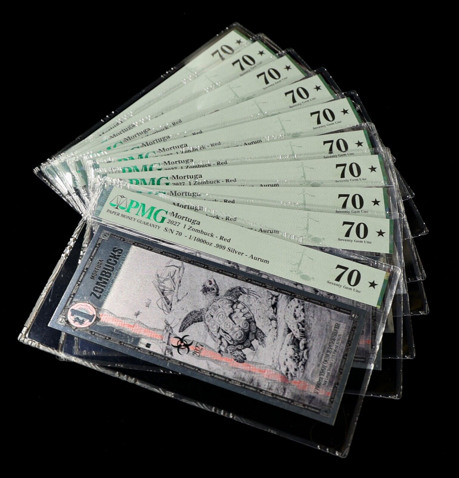 2027 Mortuga Silver Back Zombuck 1/1000 oz Sequential #70-79 10 Foil Notes PMG70