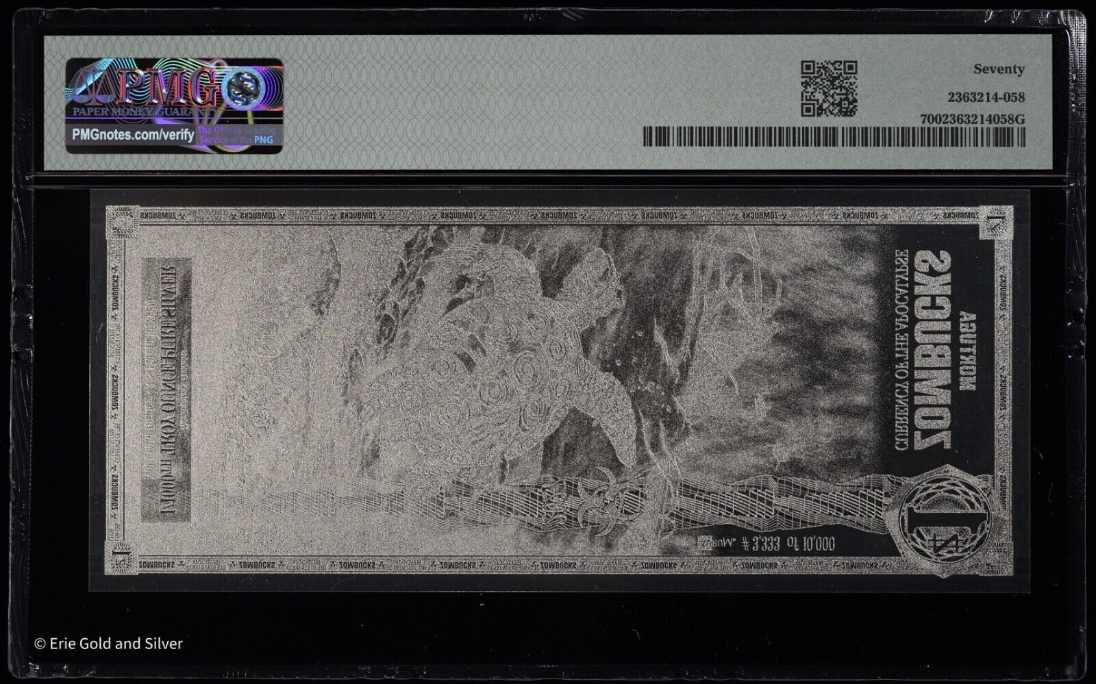 2027 Mortuga Silver Back Zombuck Fancy #3333 1/1000 oz Foil Note PMG 70 Zombucks