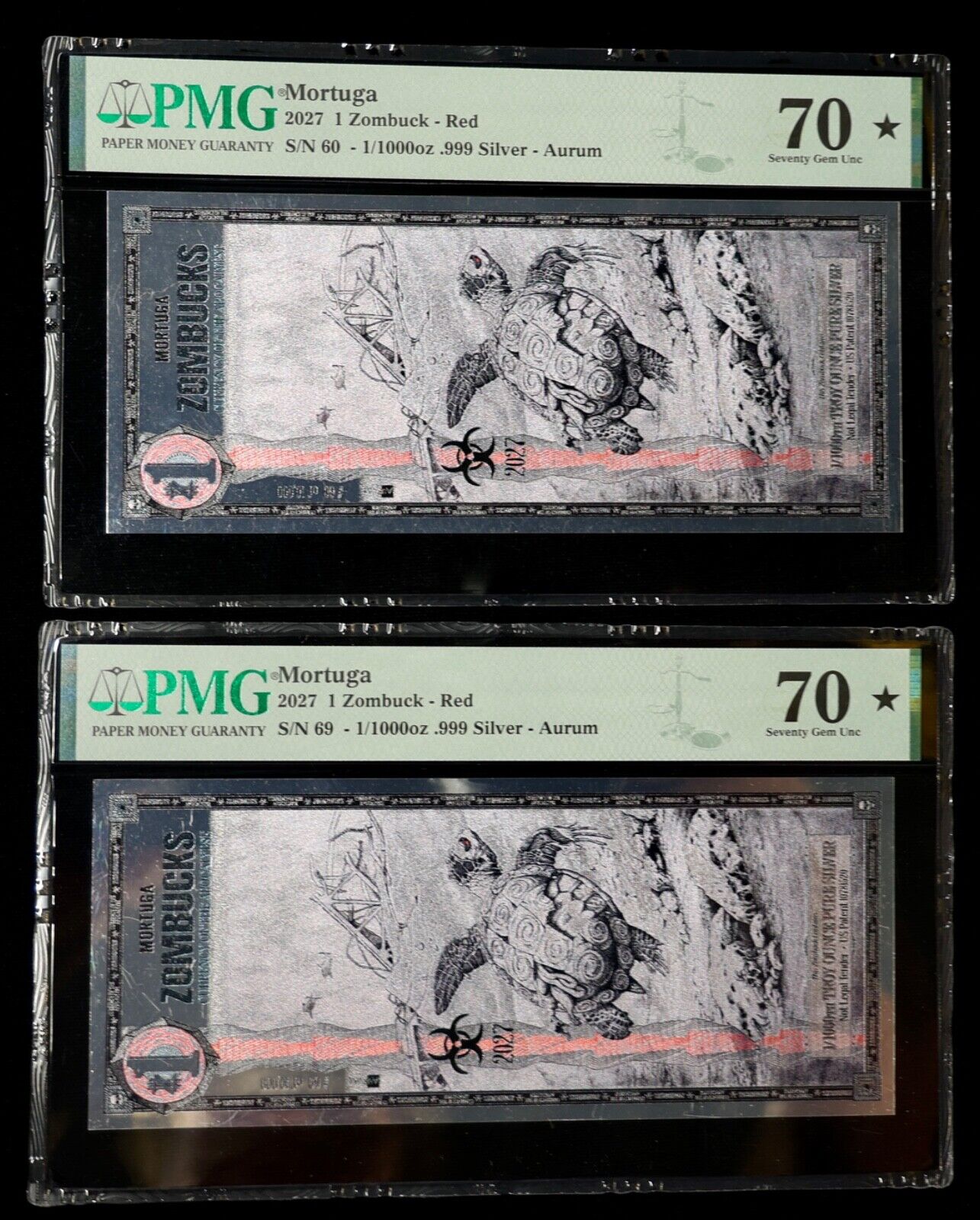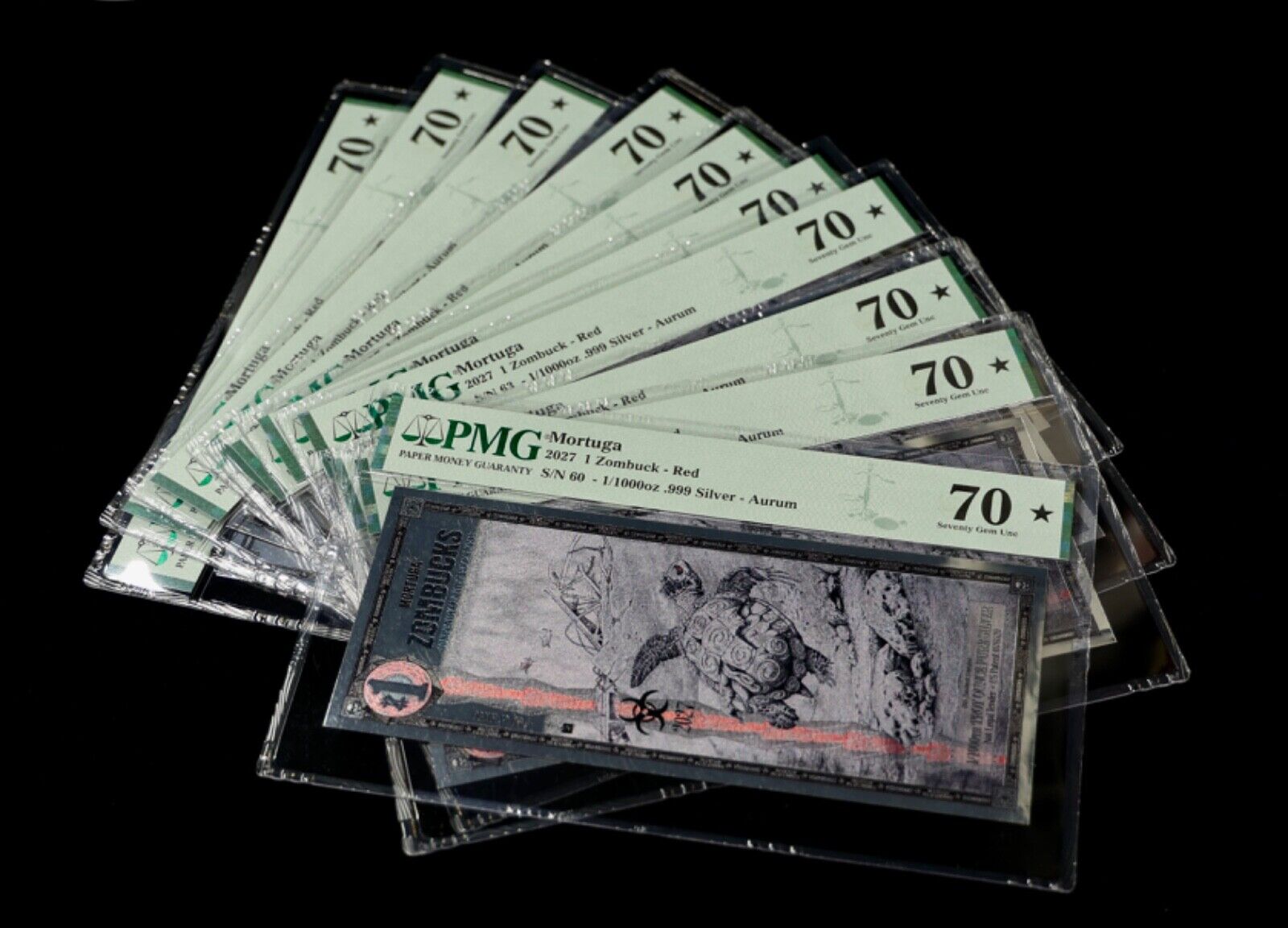 2027 Mortuga Silver Zombuck 1/1000 oz Sequential #60-69 Lot 10 Foil Notes PMG 70