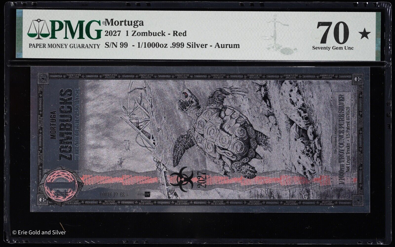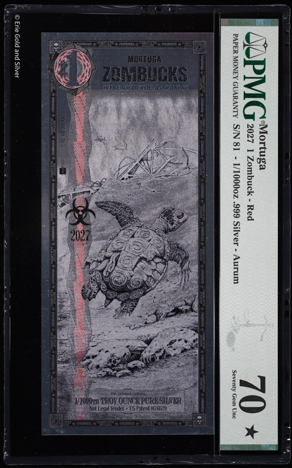 2027 Zombucks Mortuga 1/1000 oz Silver Back Foil PMG 70 Low S/N 1x Single 51-99