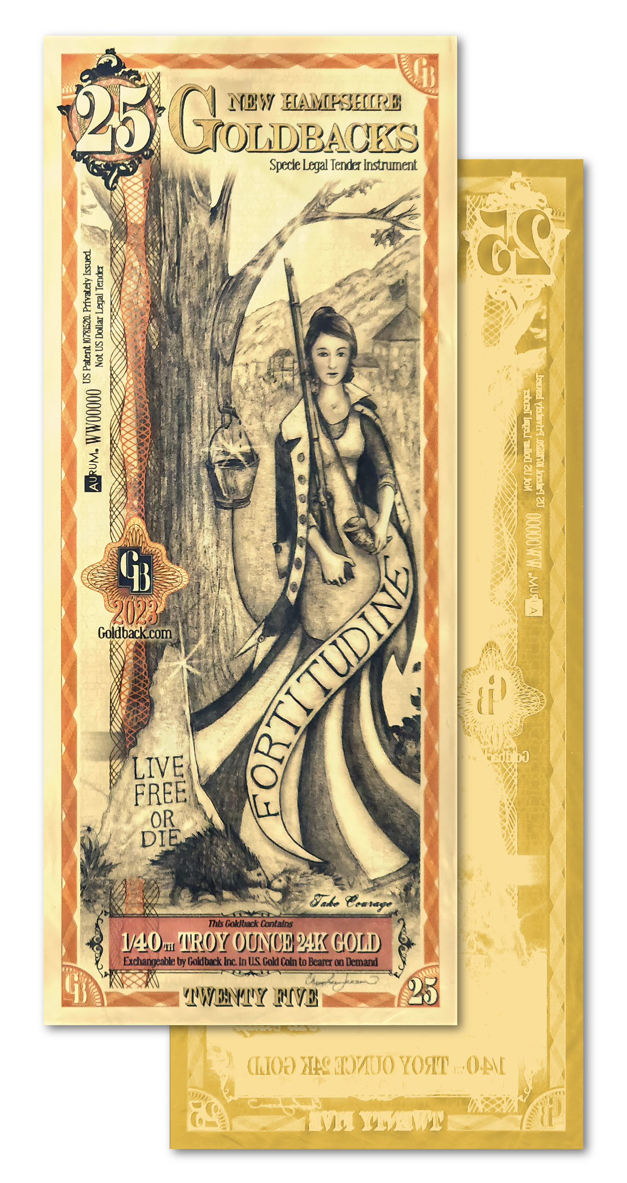 25 New Hampshire Goldbacks - Aurum Gold Foil Note (24k)