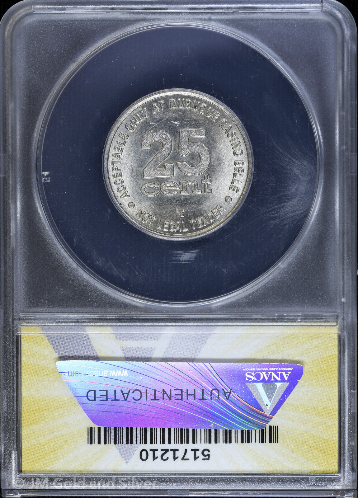 25C Dubuque Casino Belle 25 Cent Slot Token ANACS MS 62