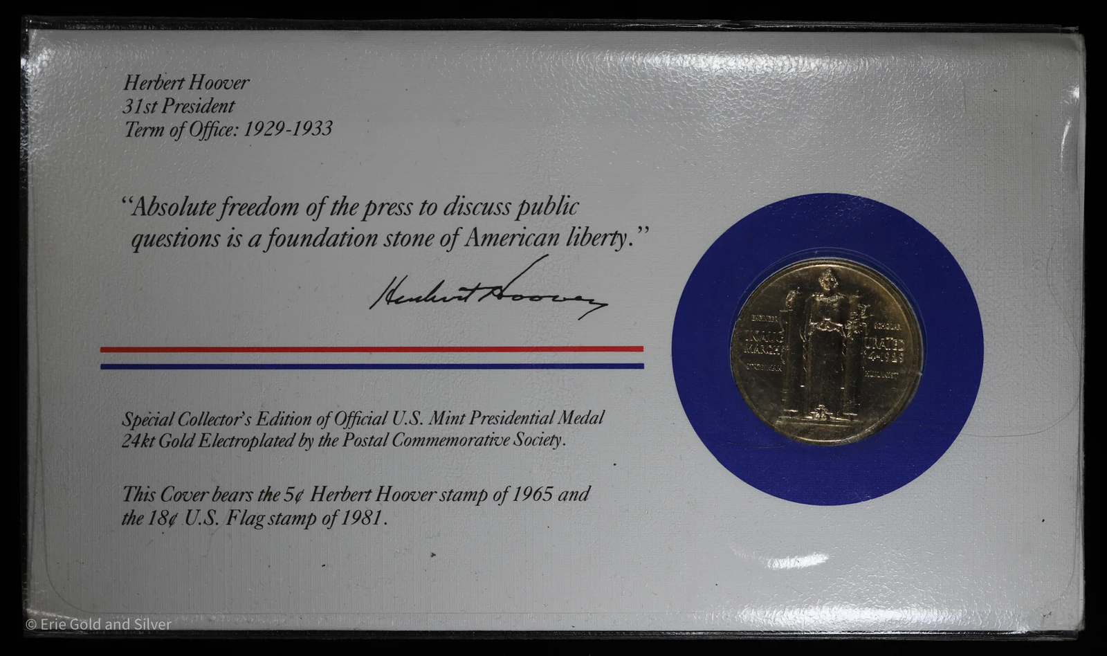 31st President Herbert Hoover Medal & Stamp Cover Token