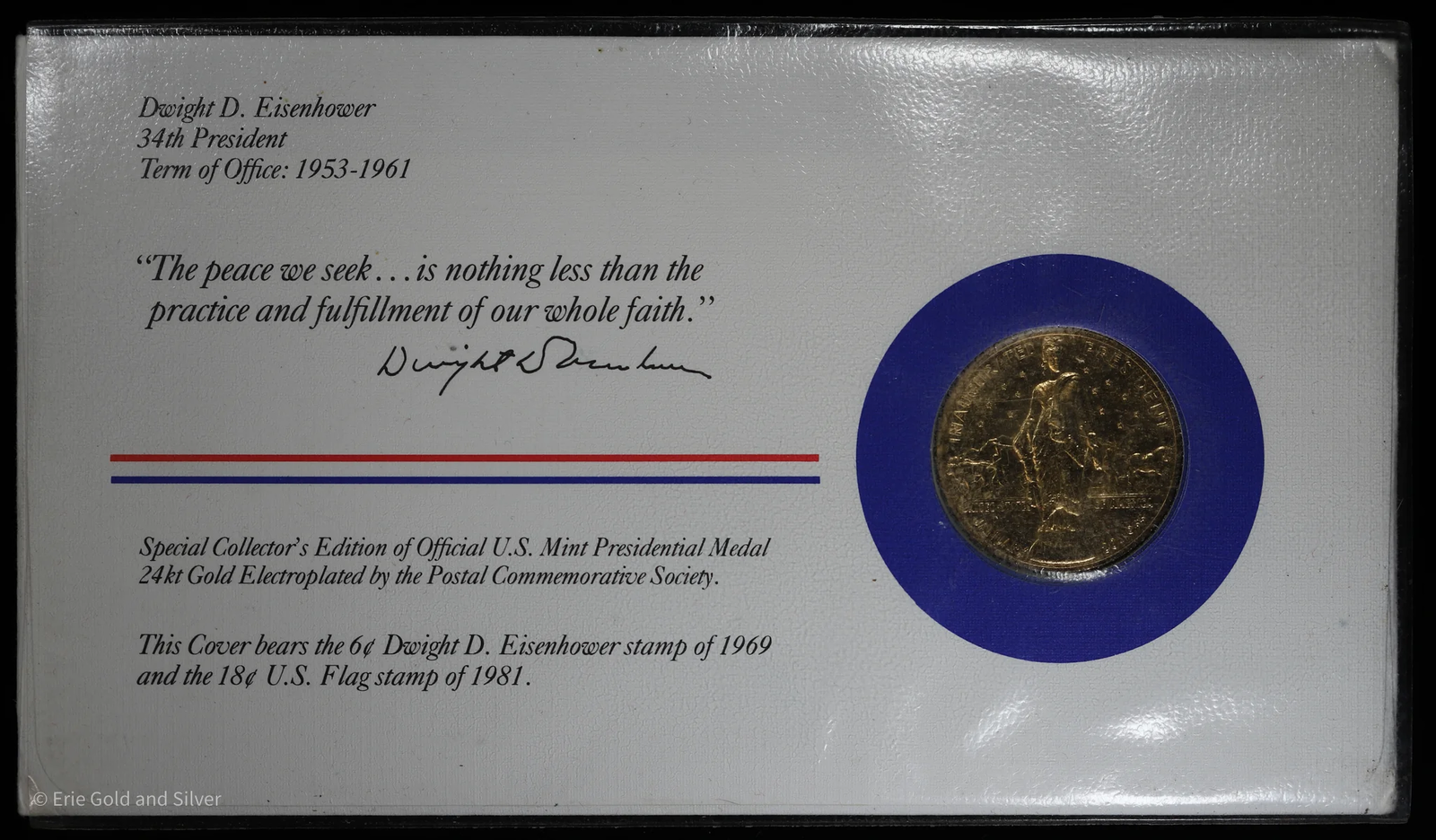 34th President Dwight D. Eisenhower Medal & Stamp Cover Token