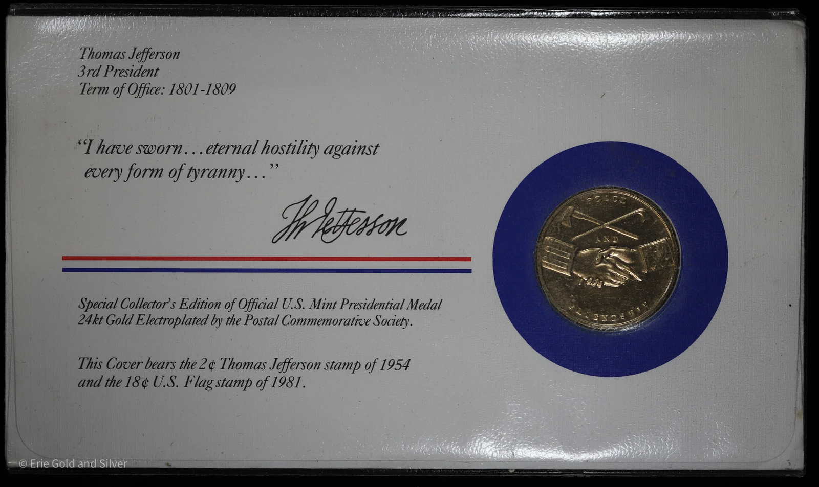3rd President Thomas Jefferson Medal & Stamp Cover Token