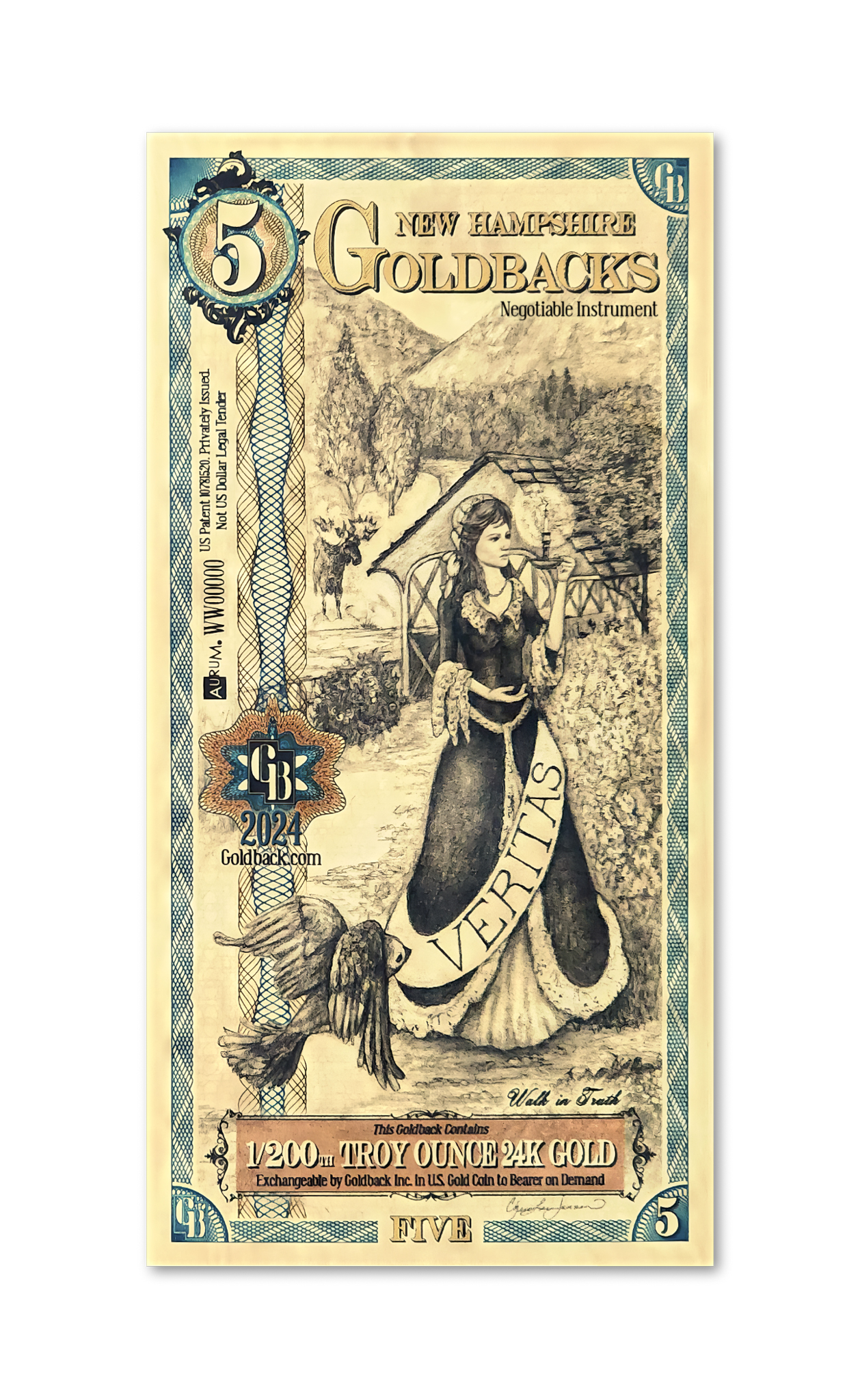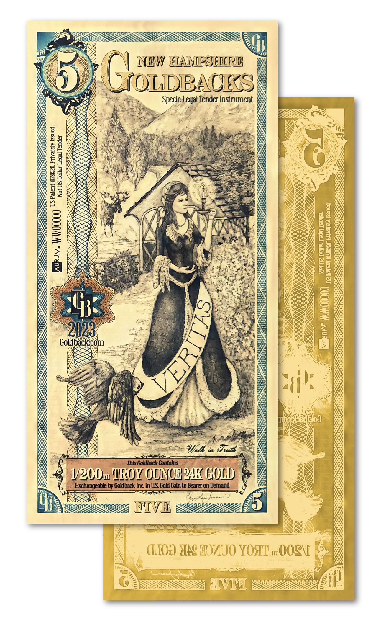 5 New Hampshire Goldbacks - Aurum Gold Foil Note (24k)