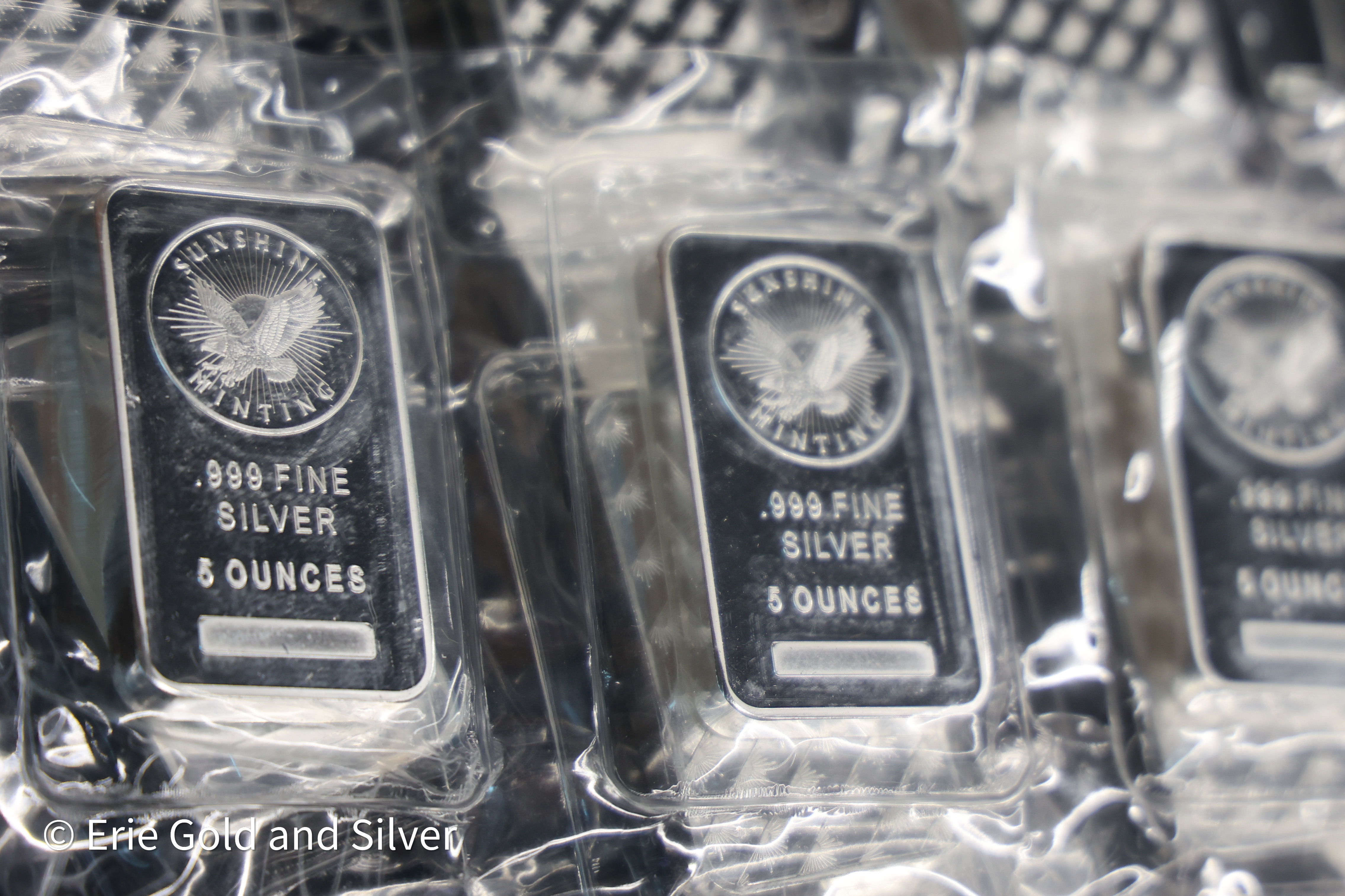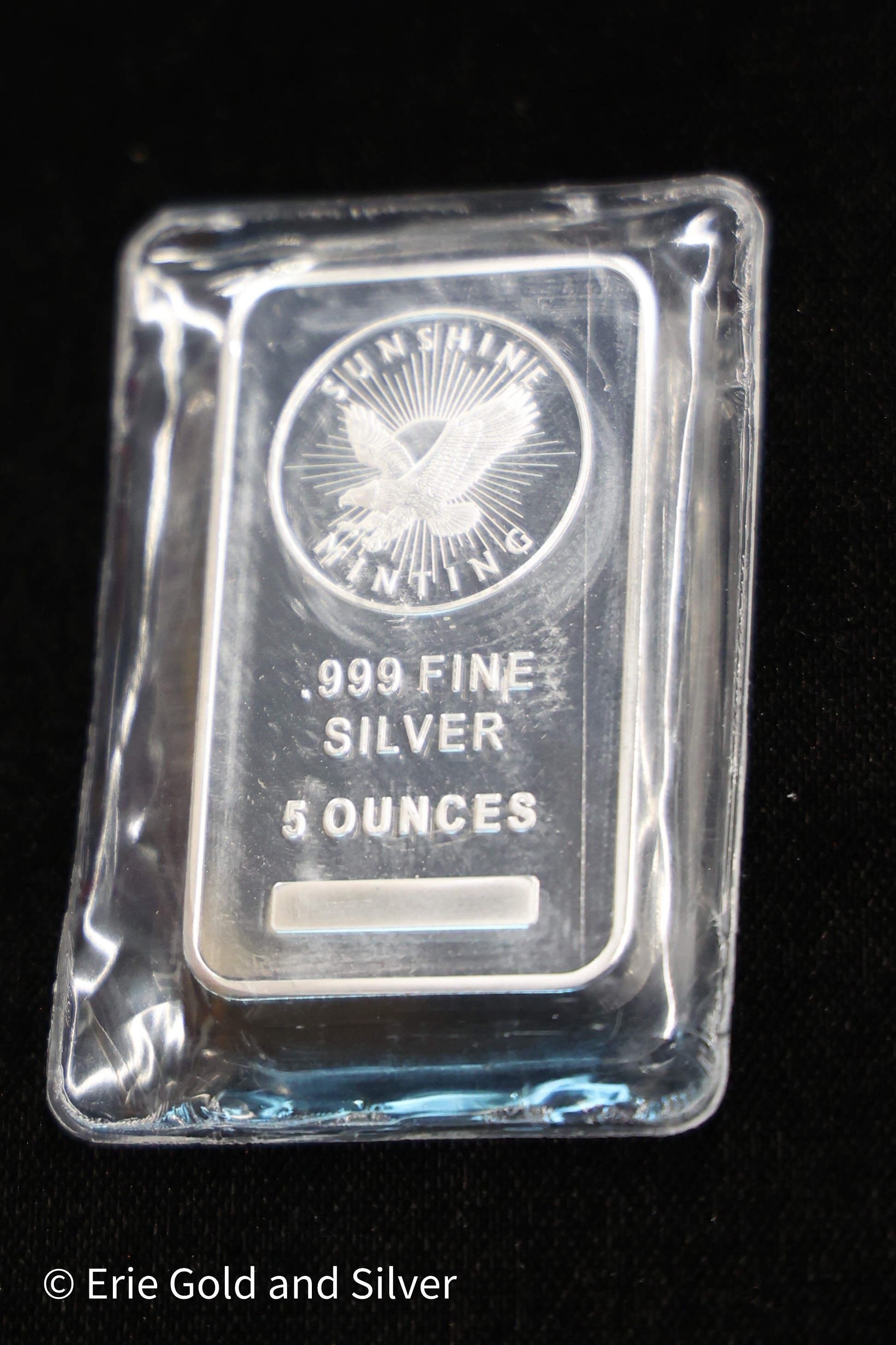 This listing is for a genuine 5 oz Sunshine Mint silver bar. Bars may show minor handling marks consistent with normal bullion storage and transit.