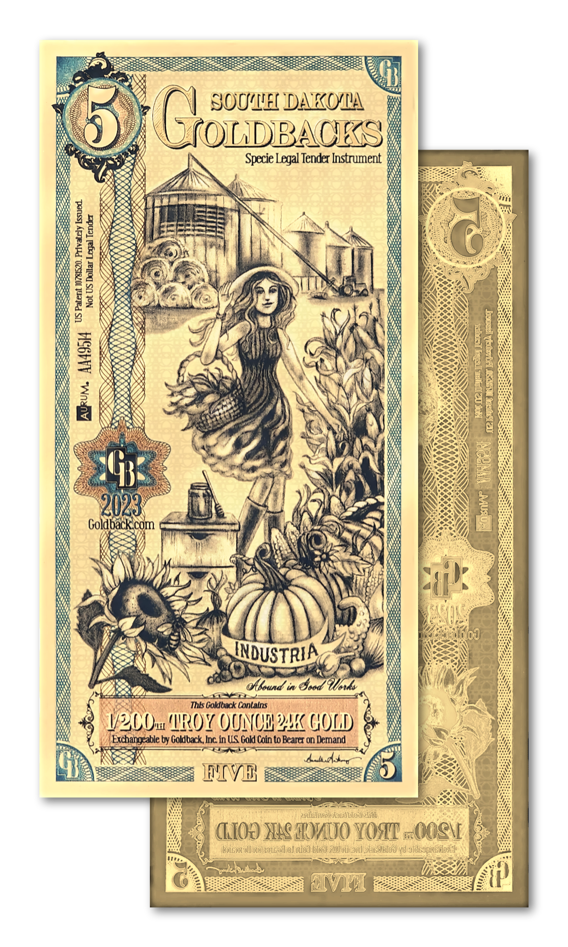 5 South Dakota Goldback - Aurum Gold Foil Note (24k)