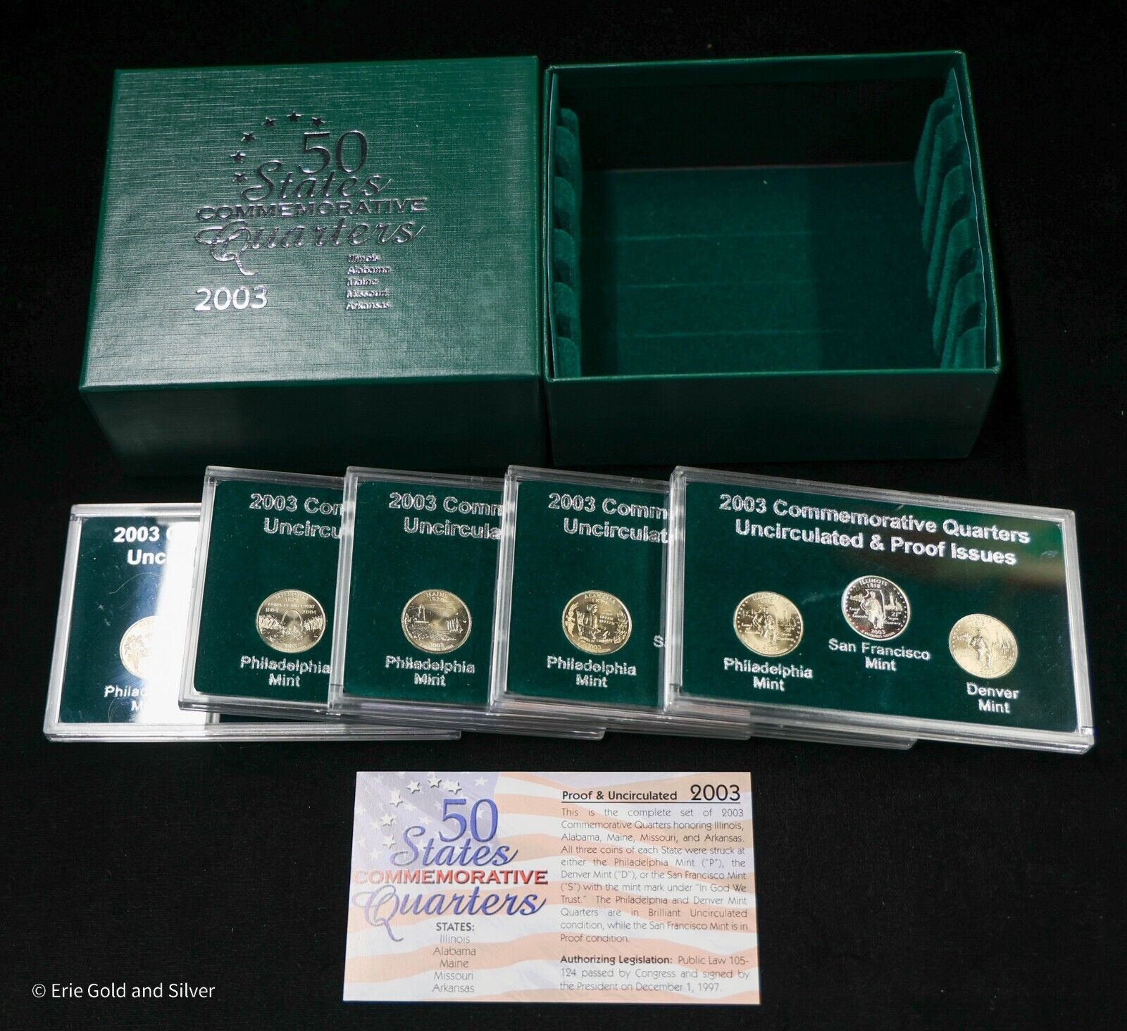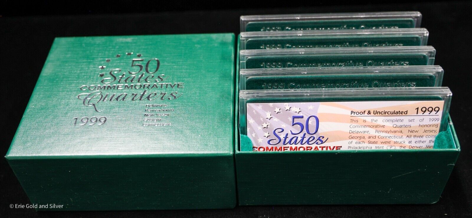 50 State Commemorative Quarters Uncirculated 1999, 2001-2007- 8 Box Set