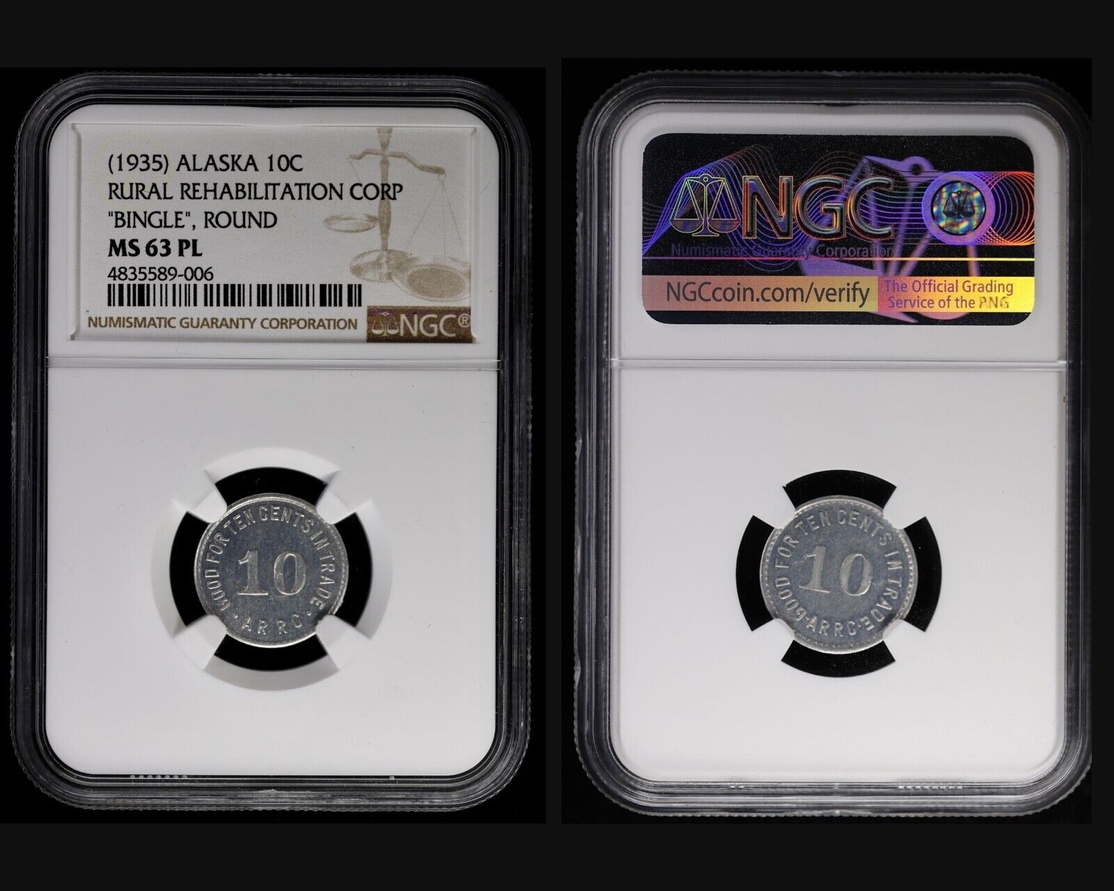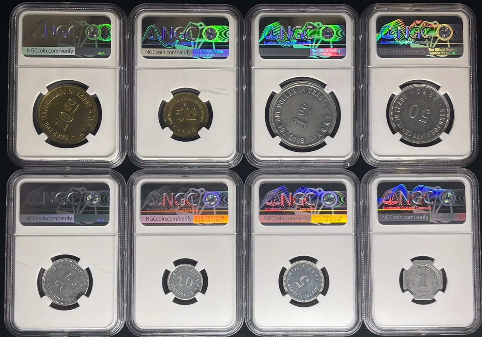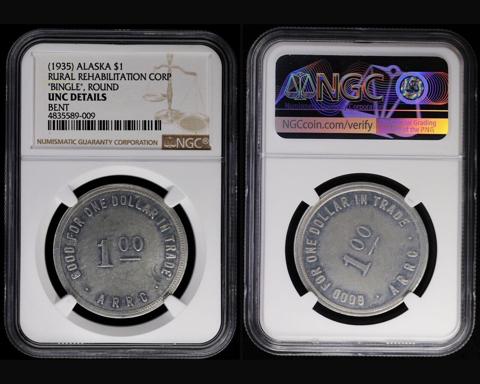 8pc Alaska R.R.C. Bingle Coin Rural Rehabilitation Corp Token Set NGC AU-UNC, PL