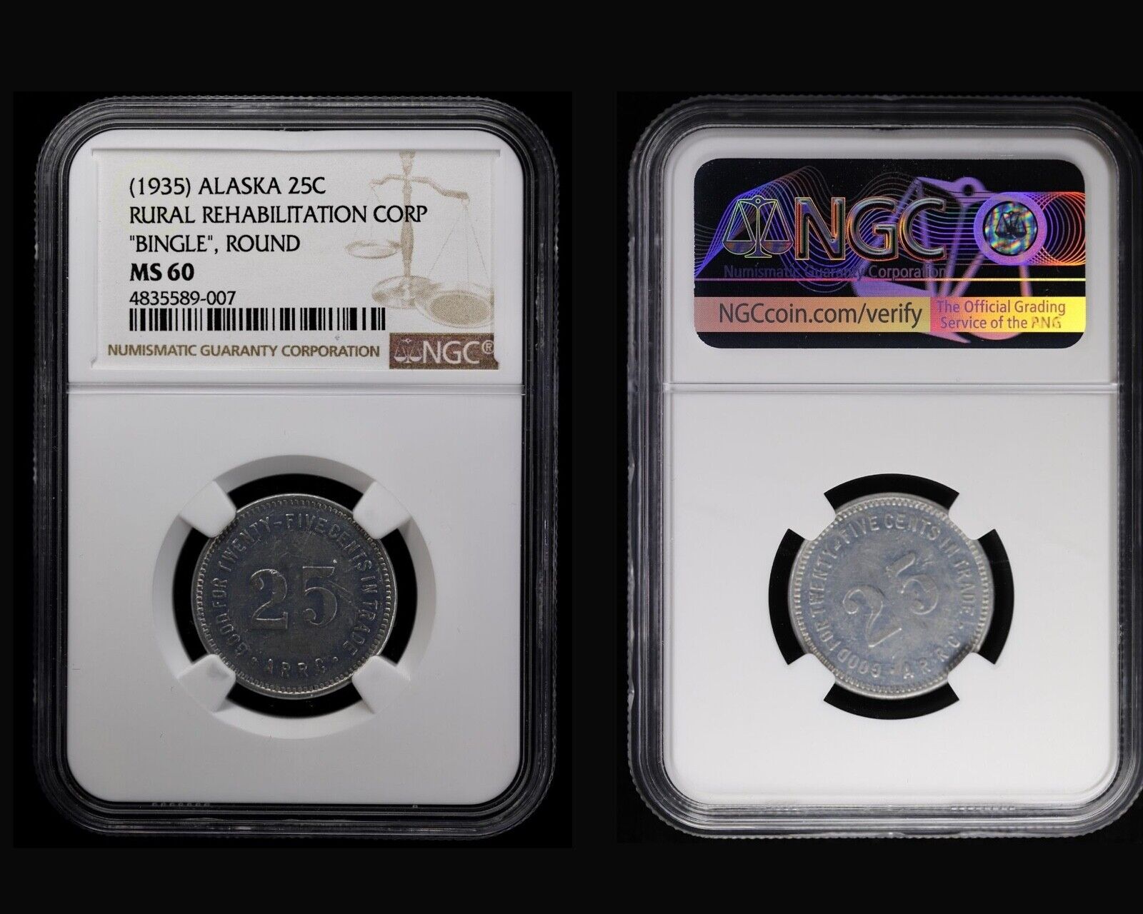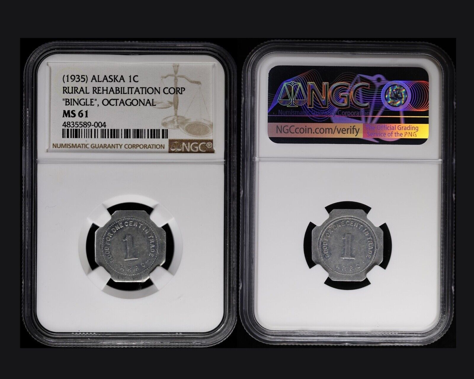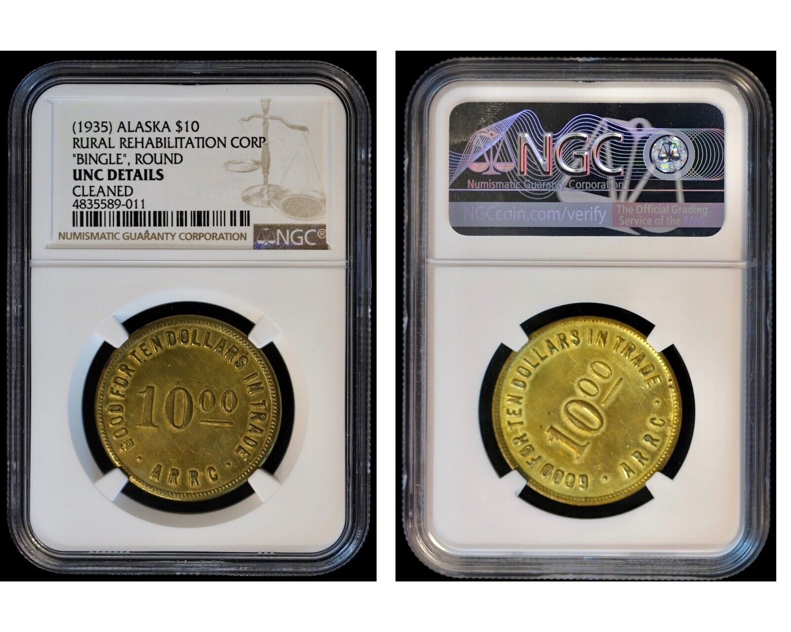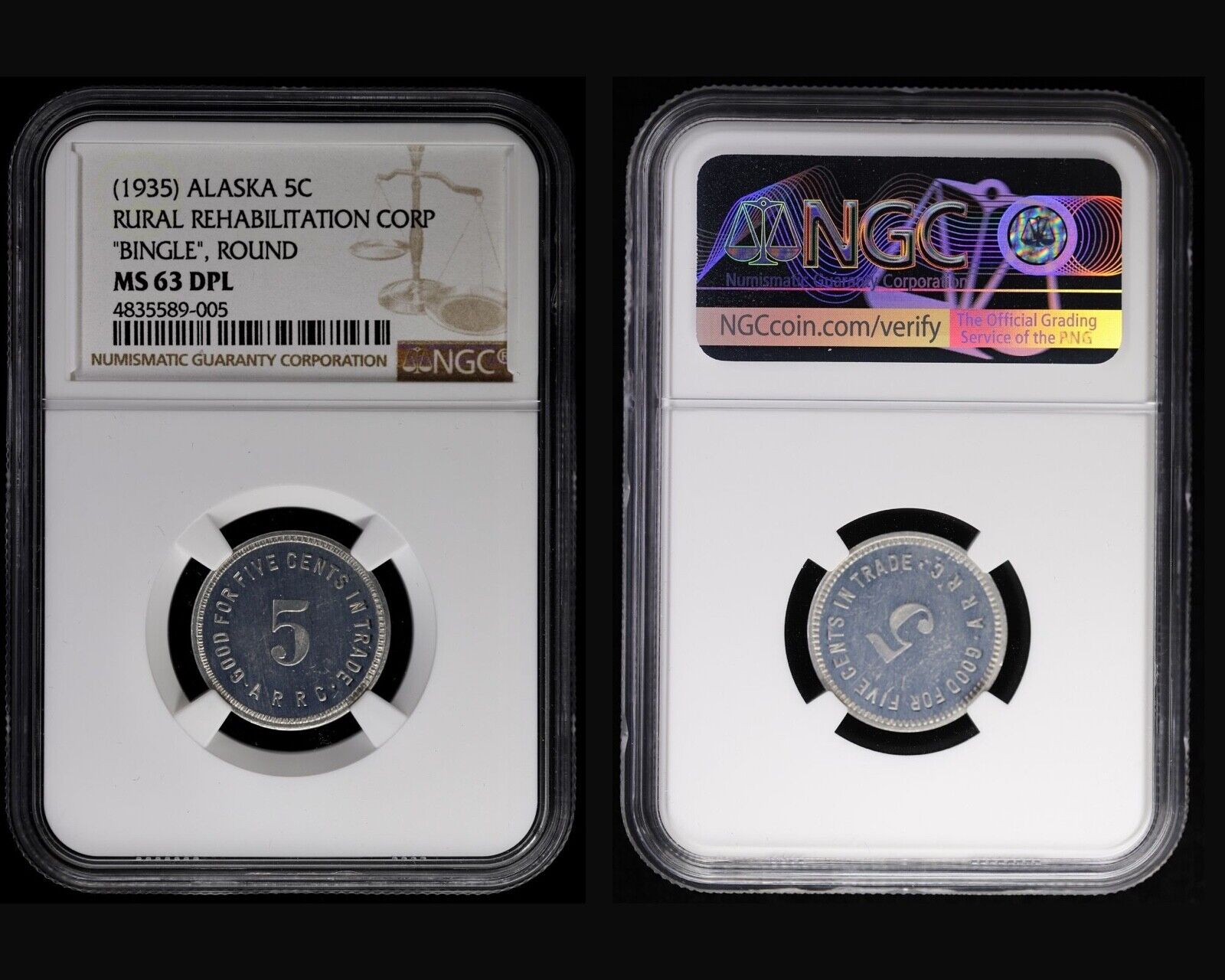 8pc Alaska R.R.C. Bingle Coin Rural Rehabilitation Corp Token Set NGC AU-UNC, PL