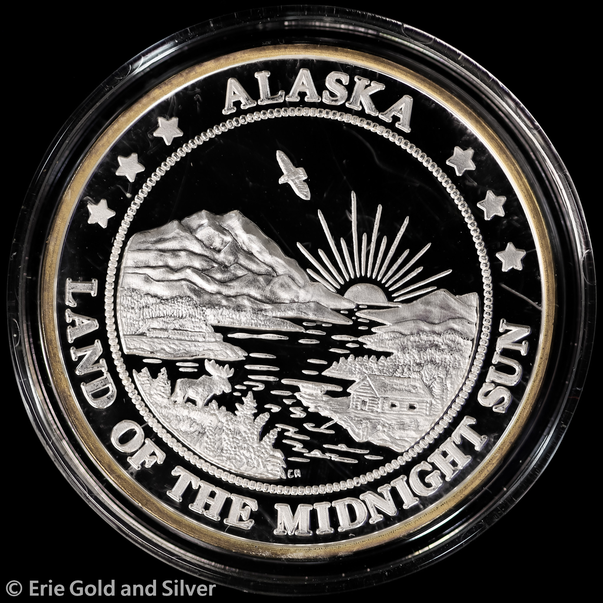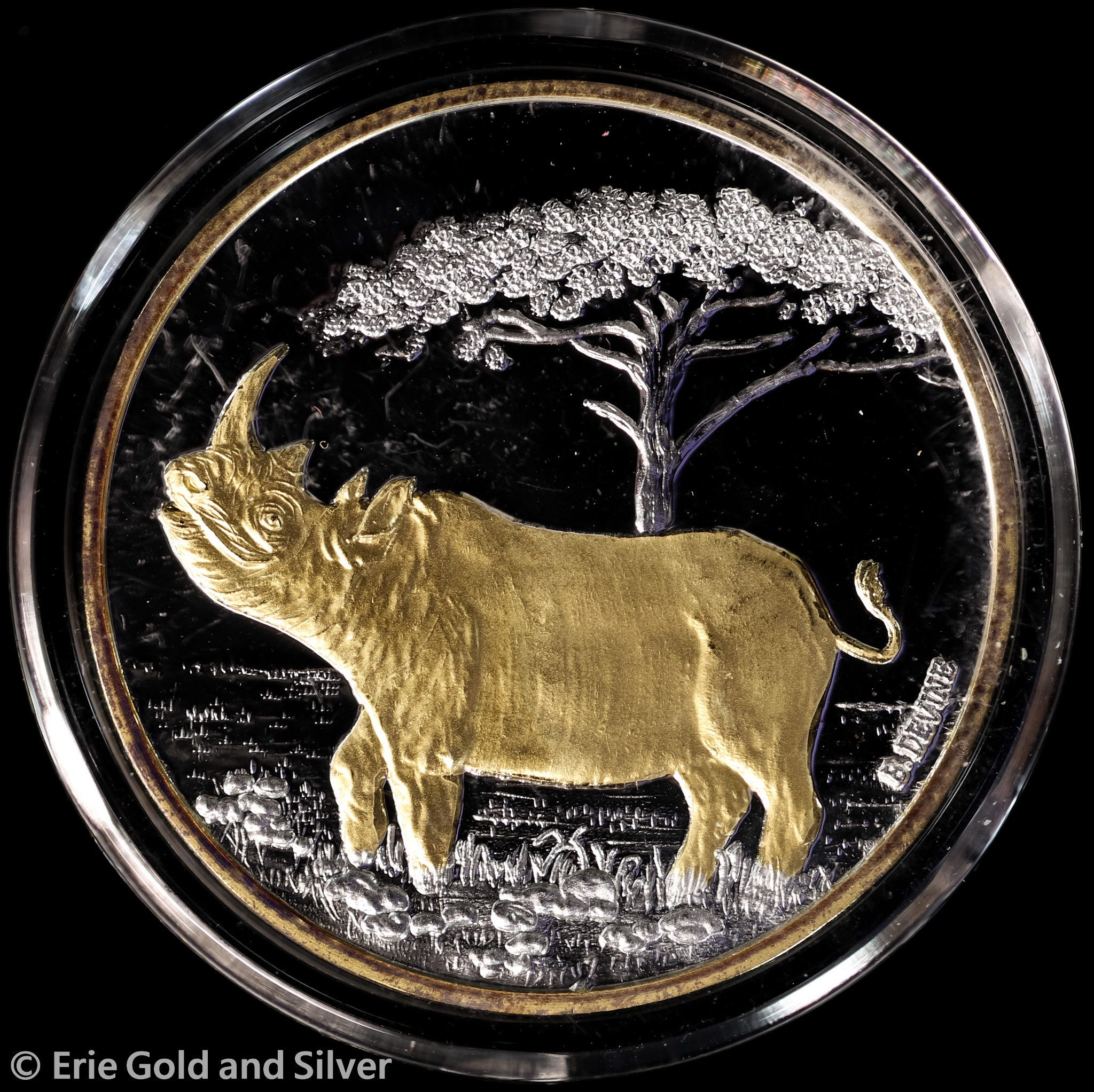 For sale is a Alaska Mint Rhino Gold Accent Proof 1 oz Silver Medal w/ COA.