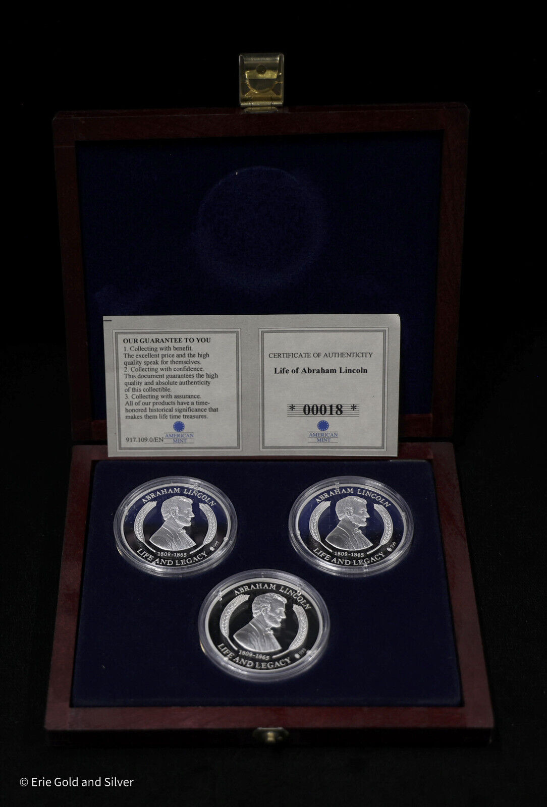 American Mint 2015 Abraham Lincoln 1 oz 3pc Proof Silver Set w/ Box & Paper