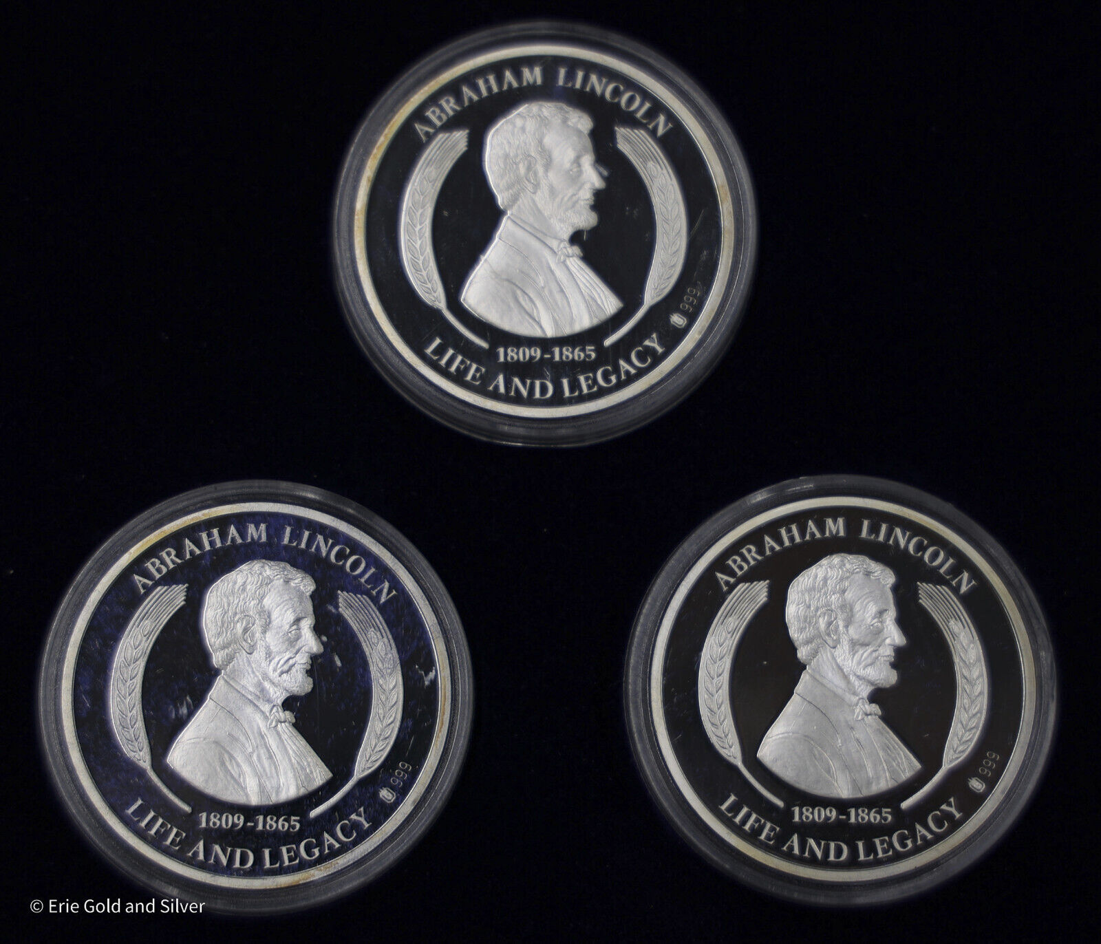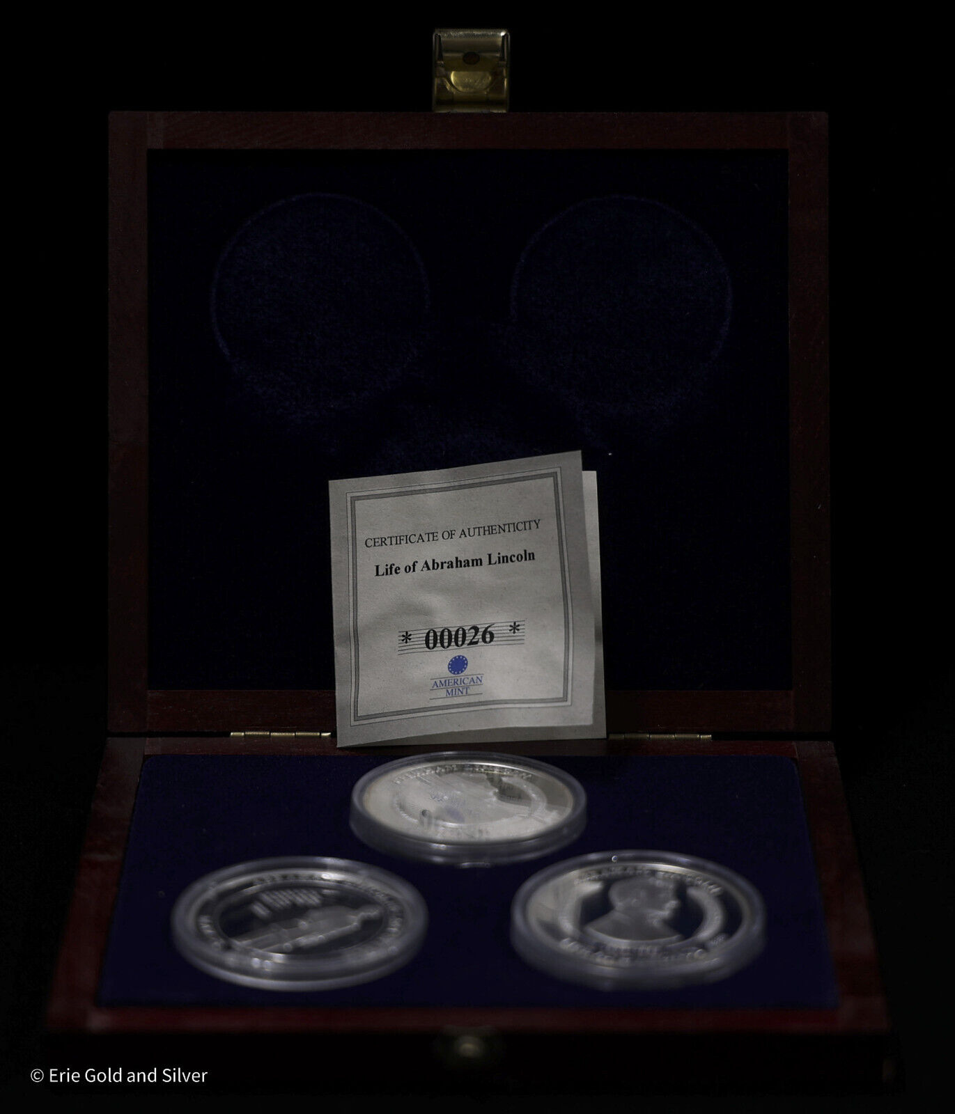 American Mint 2015 Abraham Lincoln 1 oz 3pc set proof silver w/ Box & Paper