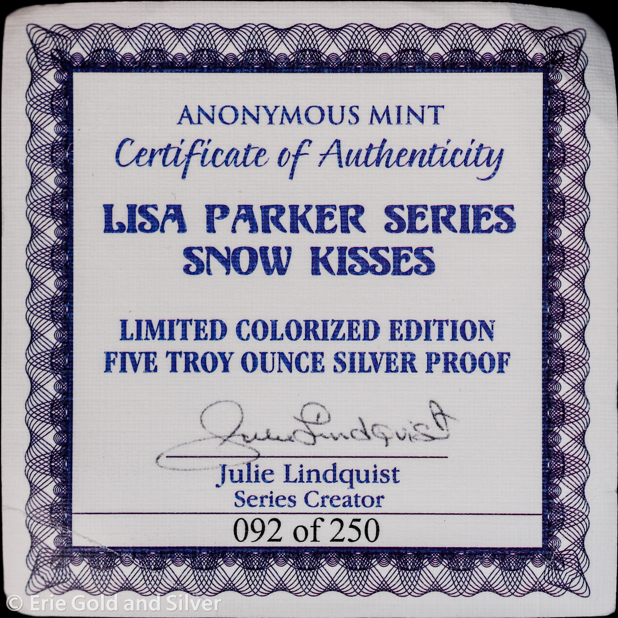 Anonymous Mint Lisa Parker Series Snow Kisses 5 oz Silver Proof Round w/ COA