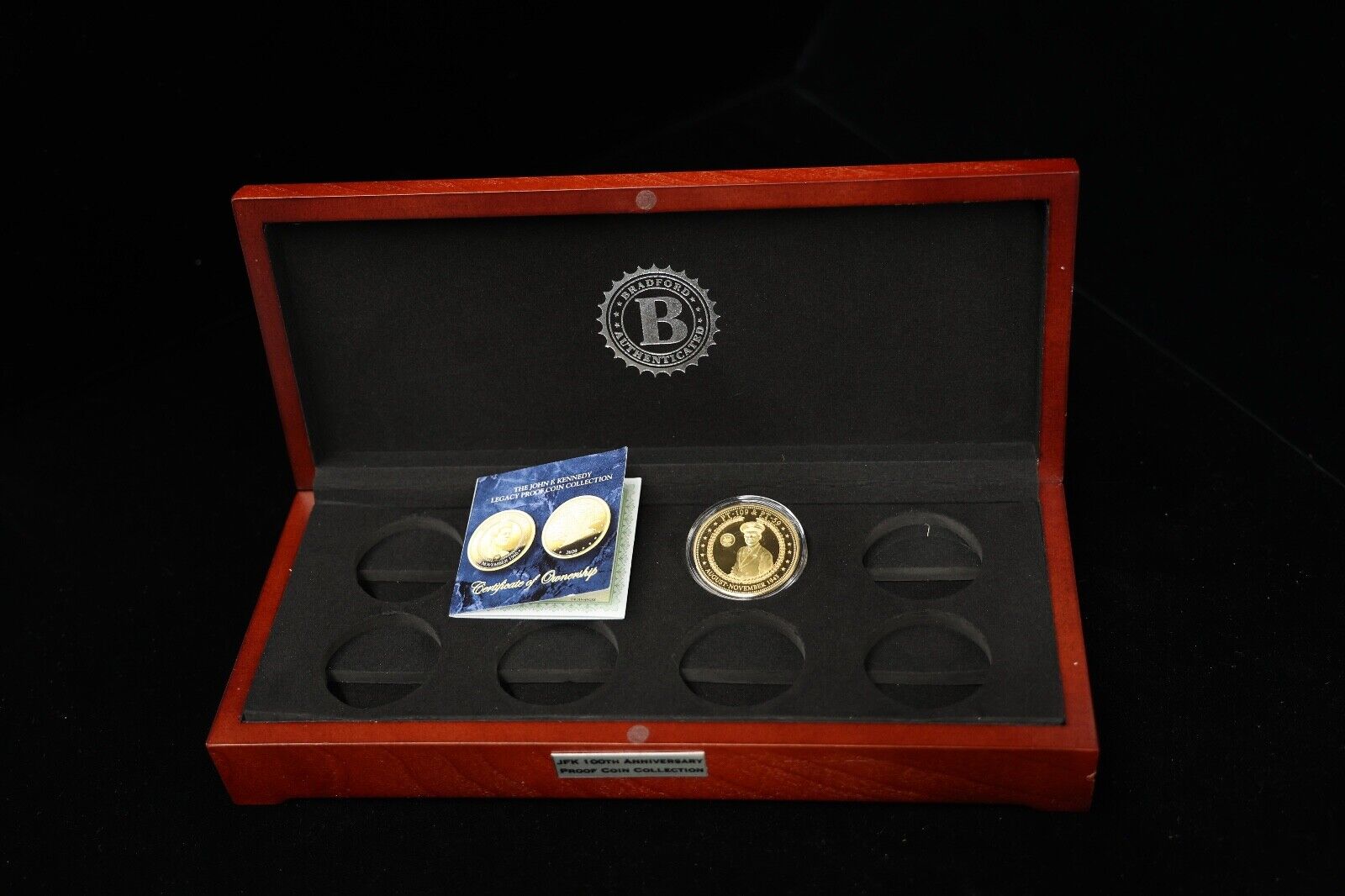 Bradford Exchange "JFK 100th Anniversary" proof 1 coin collection WOOD BOX Case