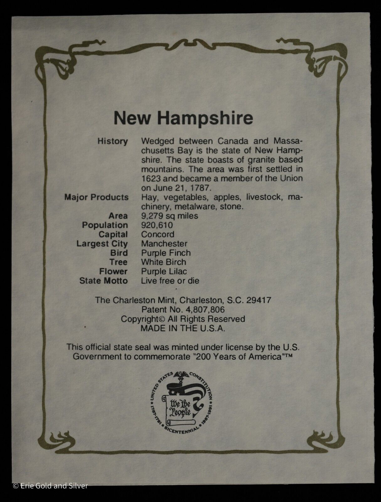 Charleston Mint Solid Bronze Great Seal of New Hampshire/United States Coin
