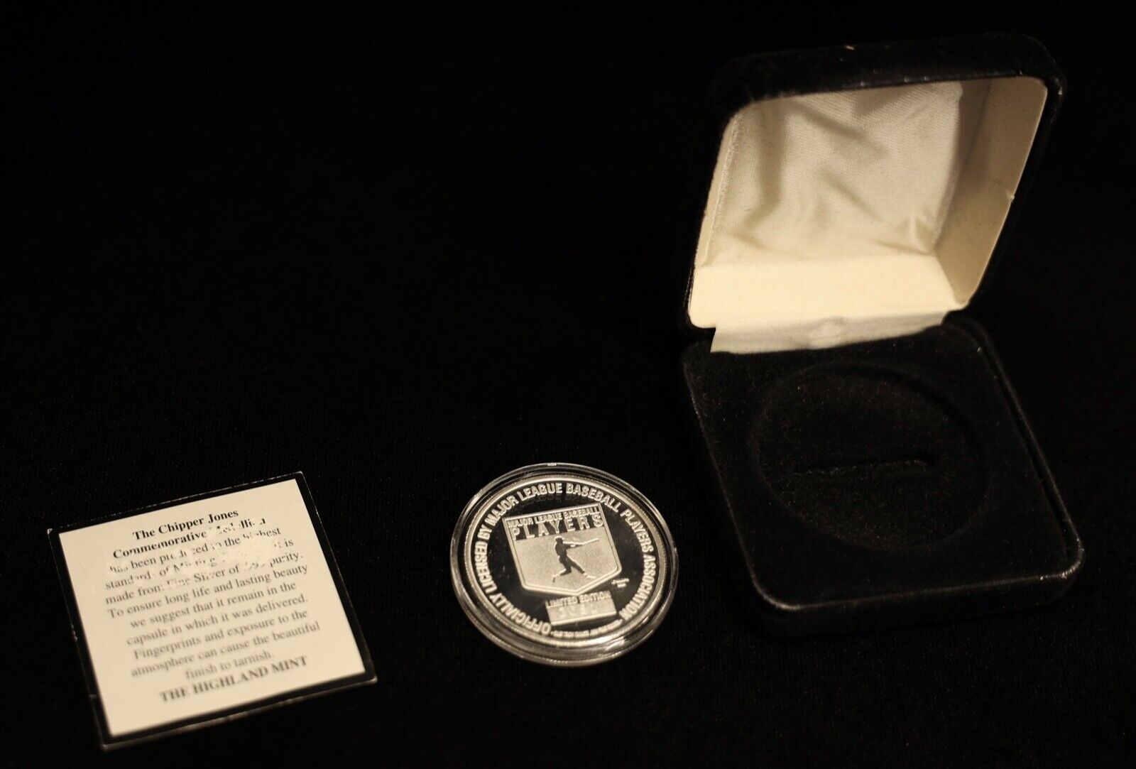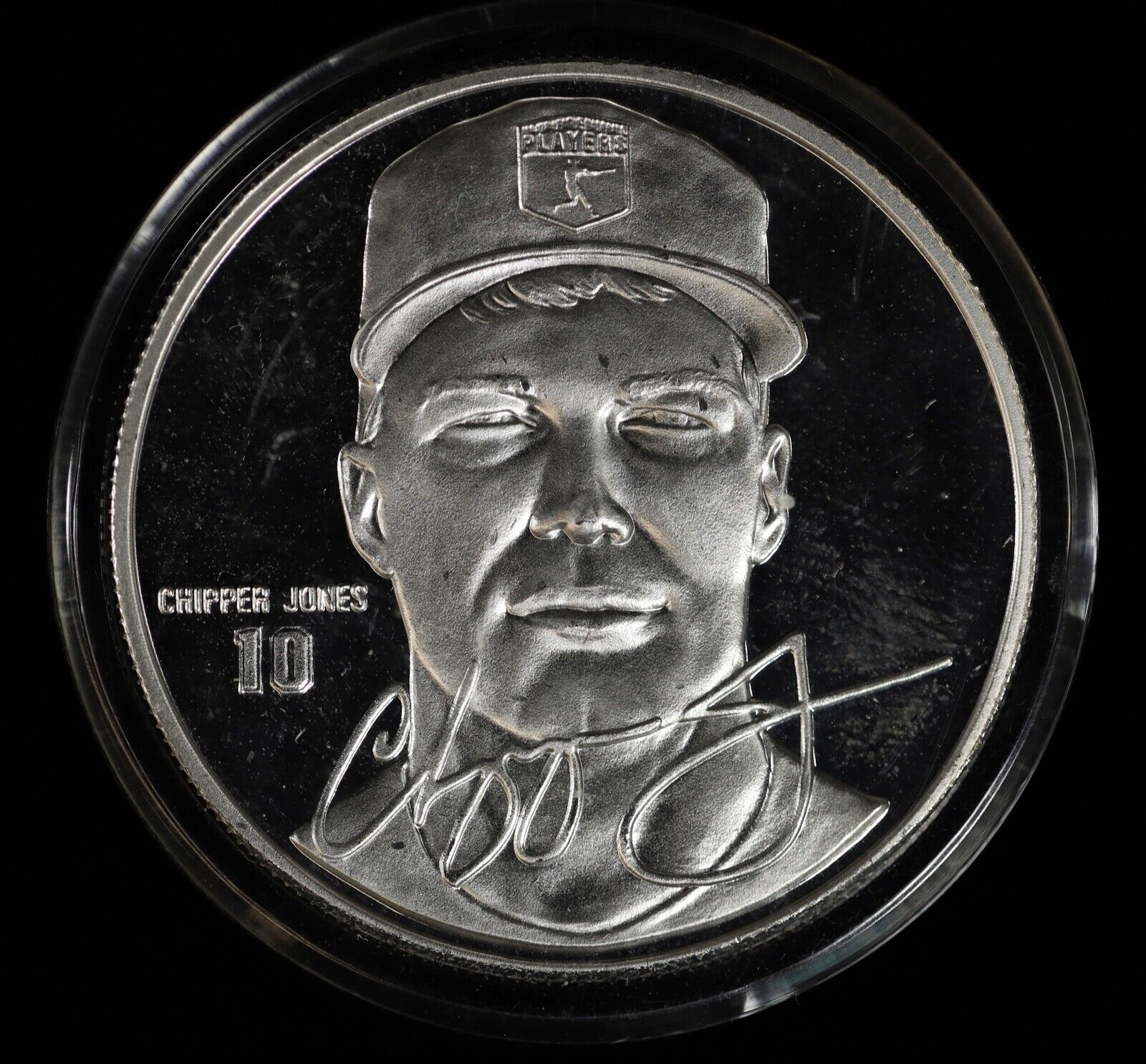 For sale is a Chipper Jones #10 Baseball 1 oz .999 Pure Silver Round Highland Mint #2081 . View pictures for details and condition, the coin pictured is the exact coin you will receive. Feel free to contact us with any questions.