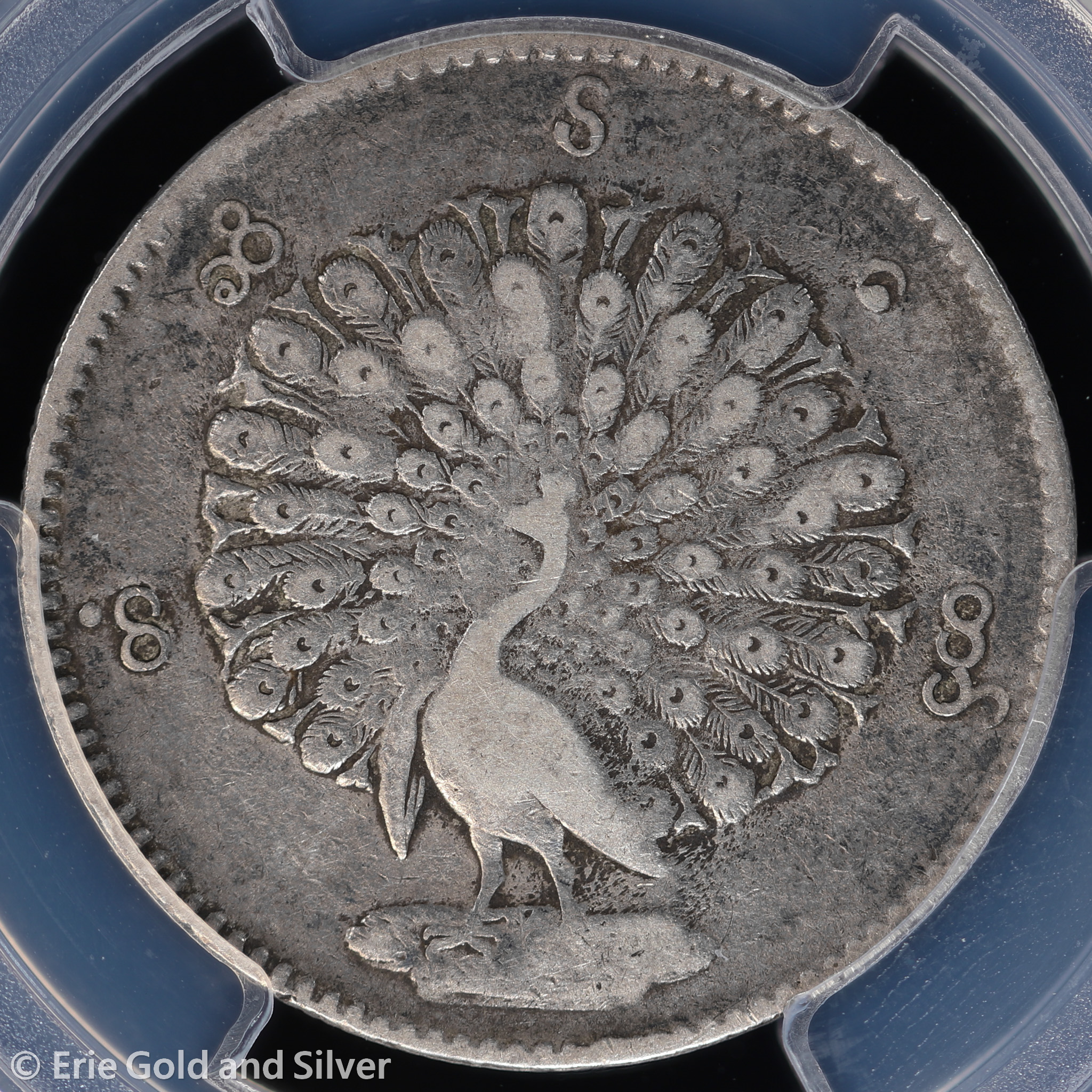 For sale is a CS1214 (1852) Burma Silver Kyat. Certified / graded by PCGS at VF 25.