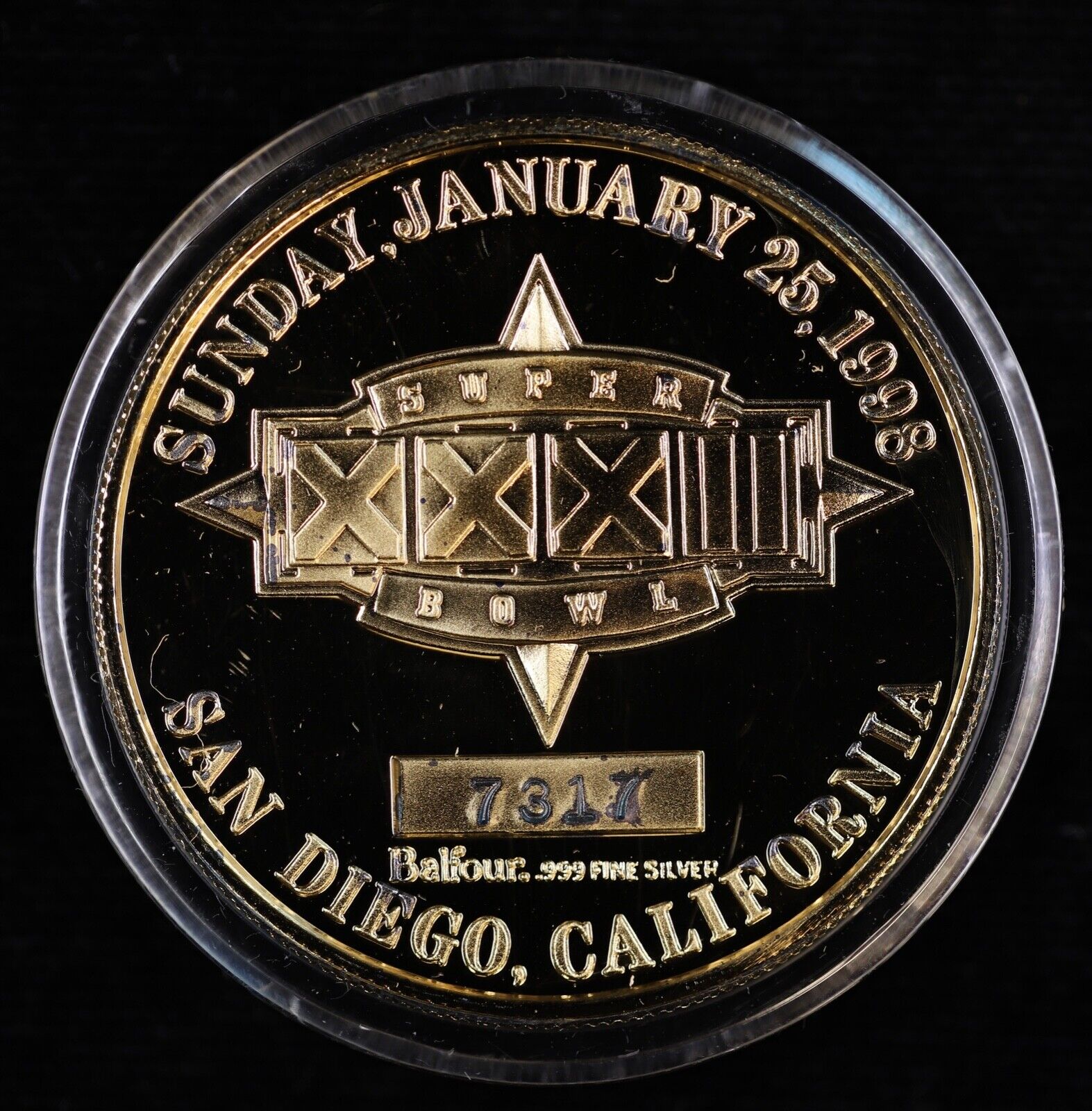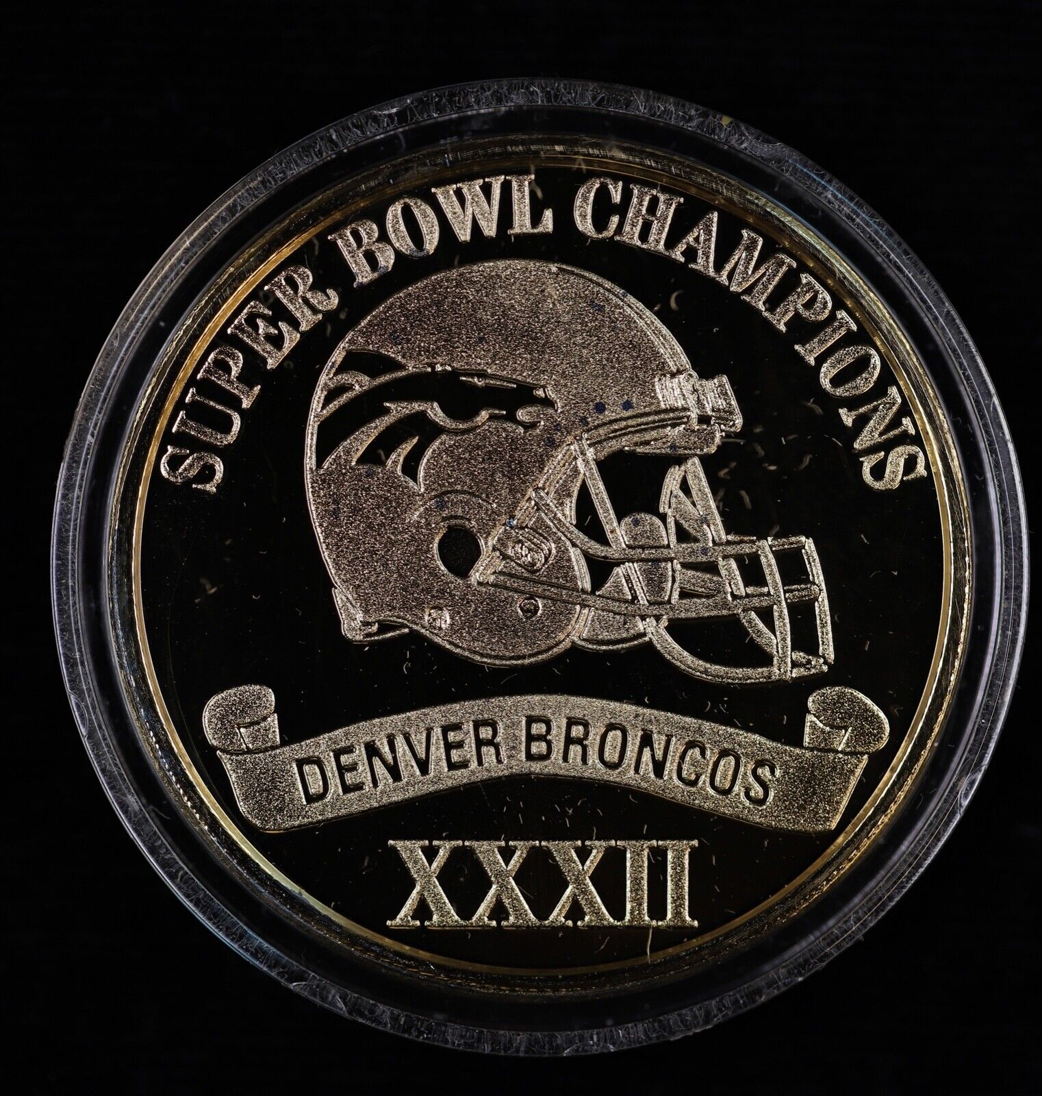 Denver Broncos Super Bowl XXXII 32 Champions 1 oz Silver Round 24kt Overlay