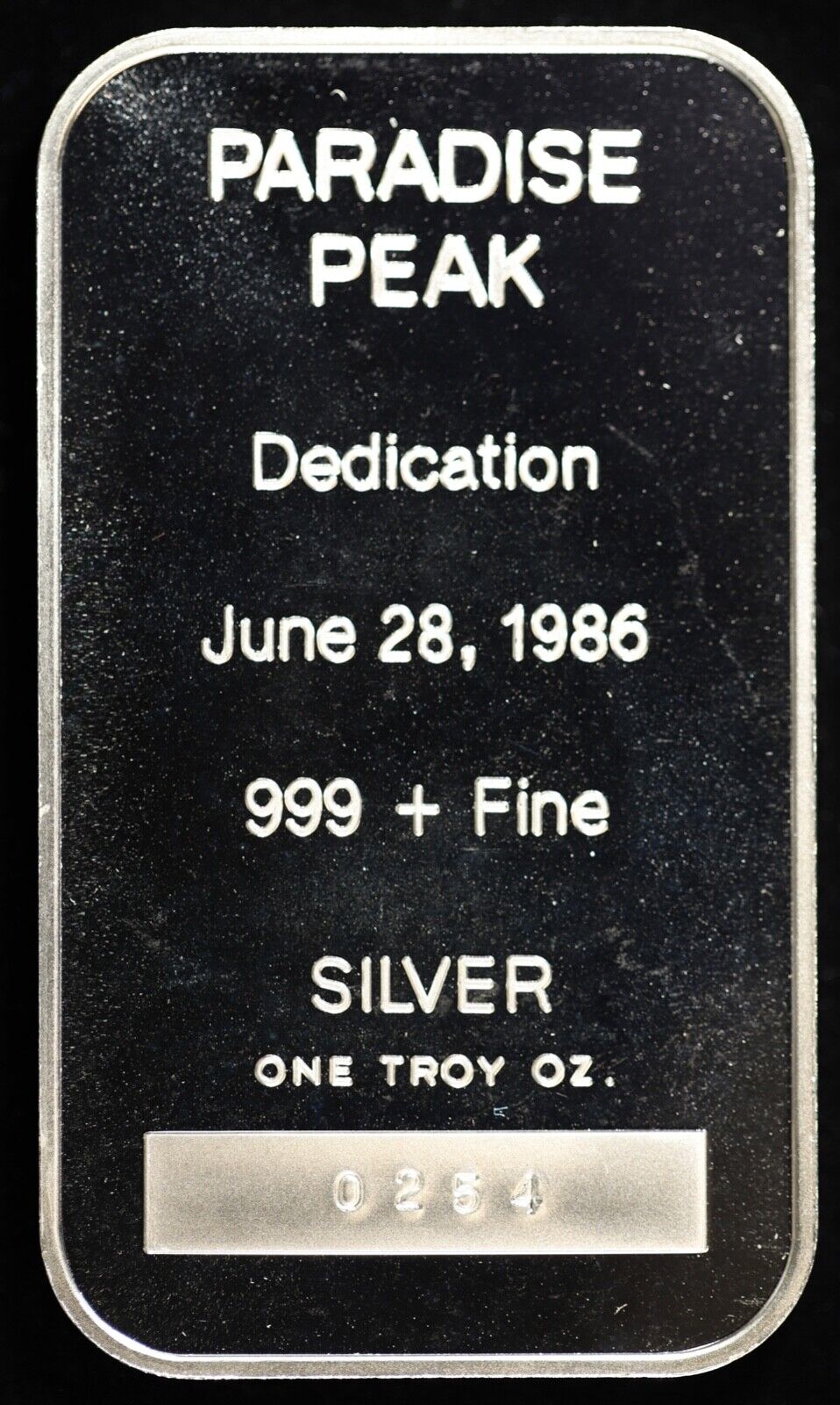 FMC Paradise Peak Dedication June 28, 1986 1 oz Fine Silver Bar #0254