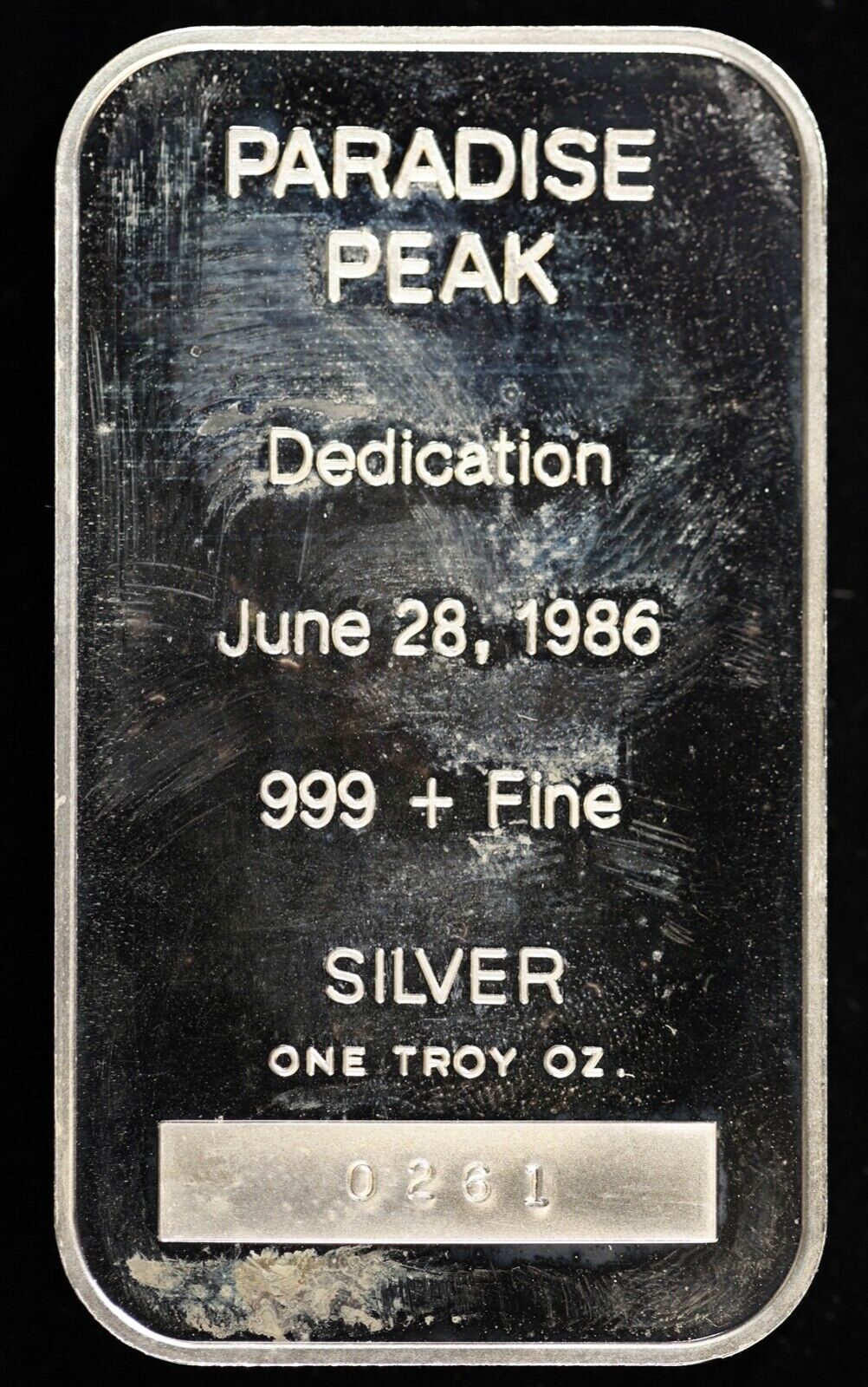 FMC Paradise Peak Dedication June 28, 1986 1 oz Fine Silver Bar #0261