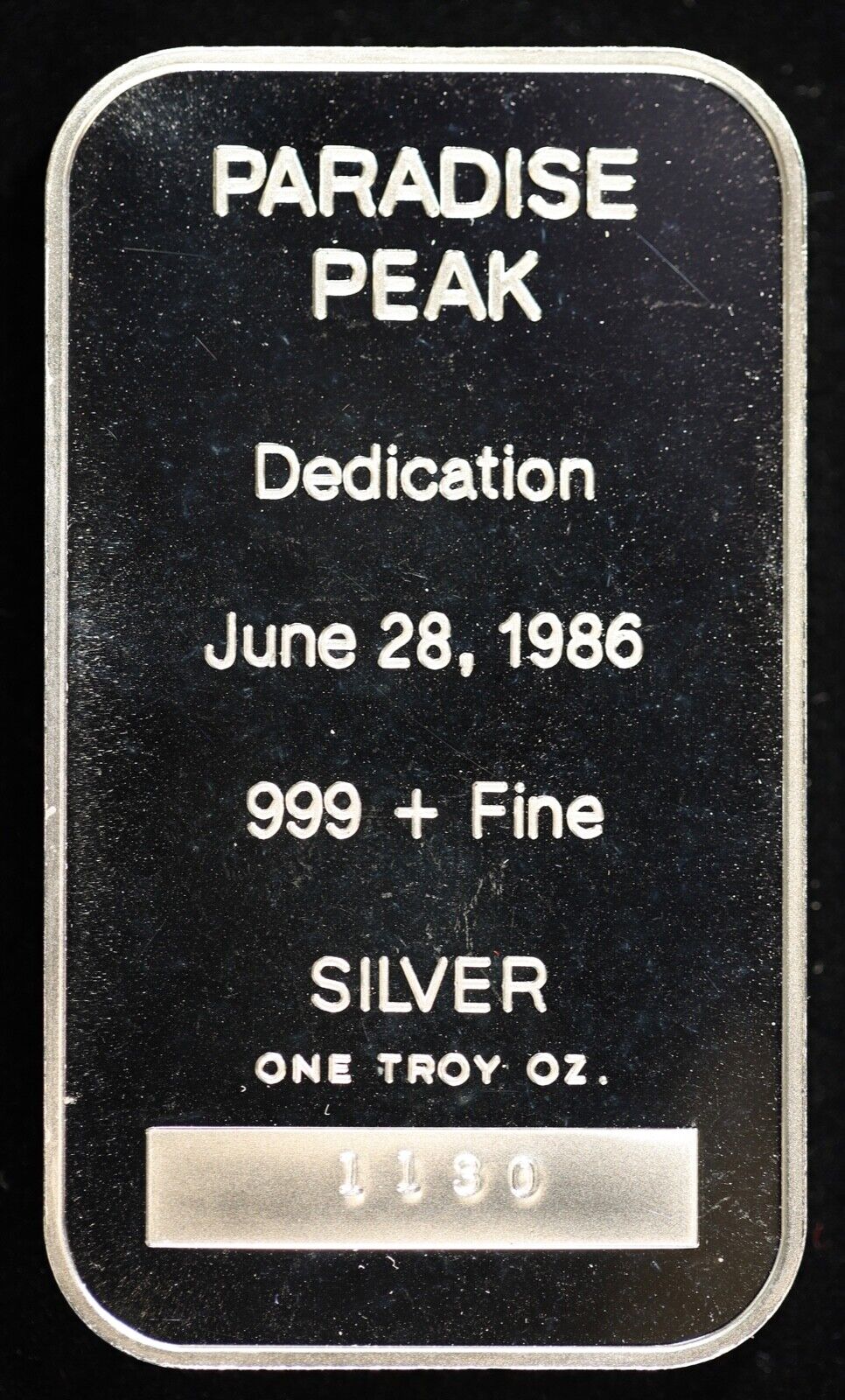 FMC Paradise Peak Dedication June 28, 1986 1 oz Fine Silver Bar #1130