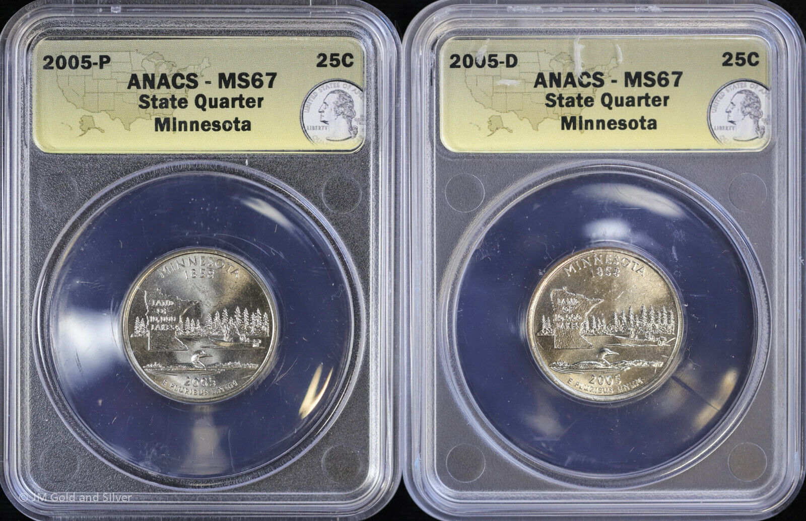 Full P & D 50 State Quarter Set 100 Coins ANACS MS 67 | Uncirculated UNC BU