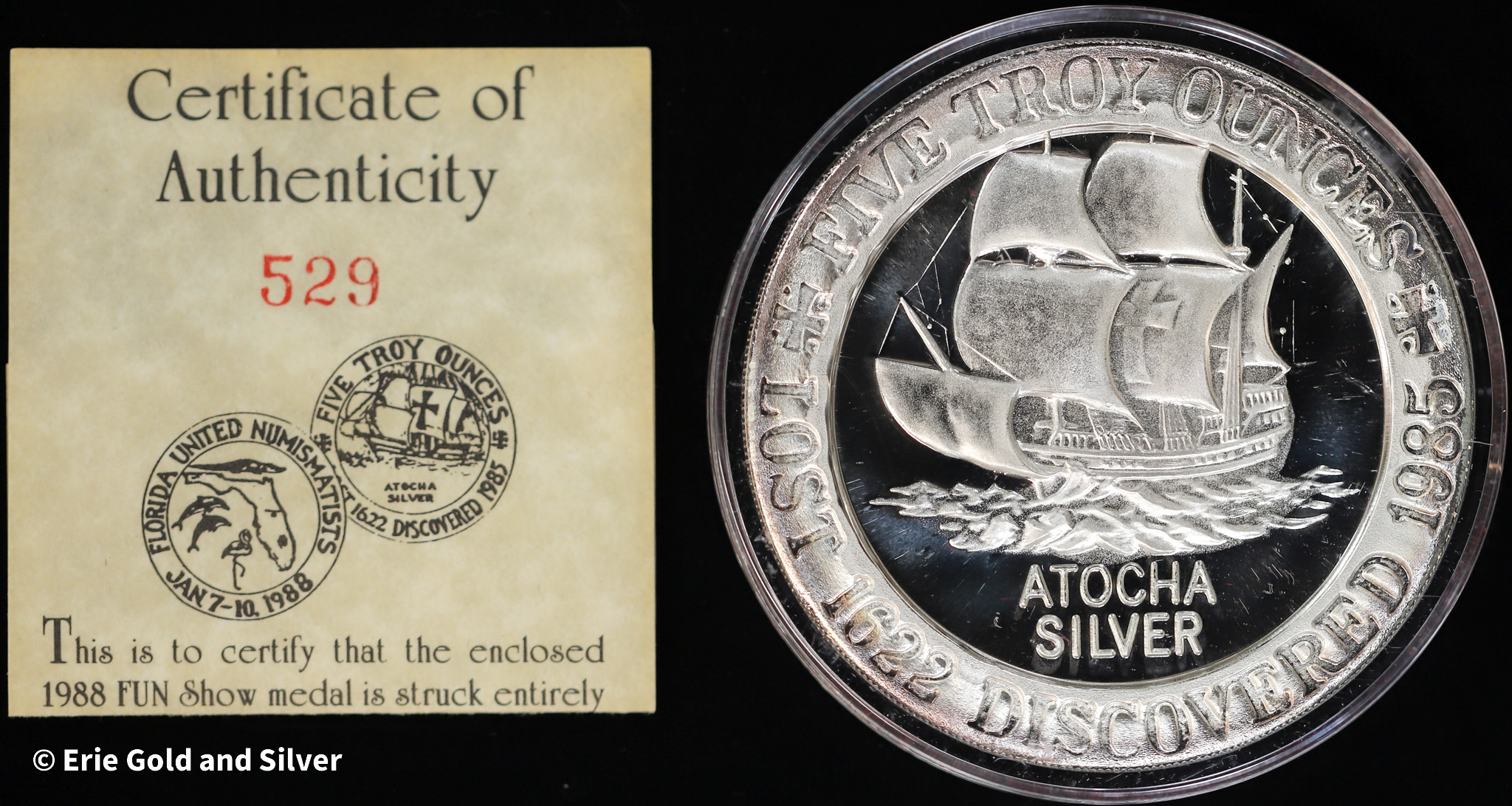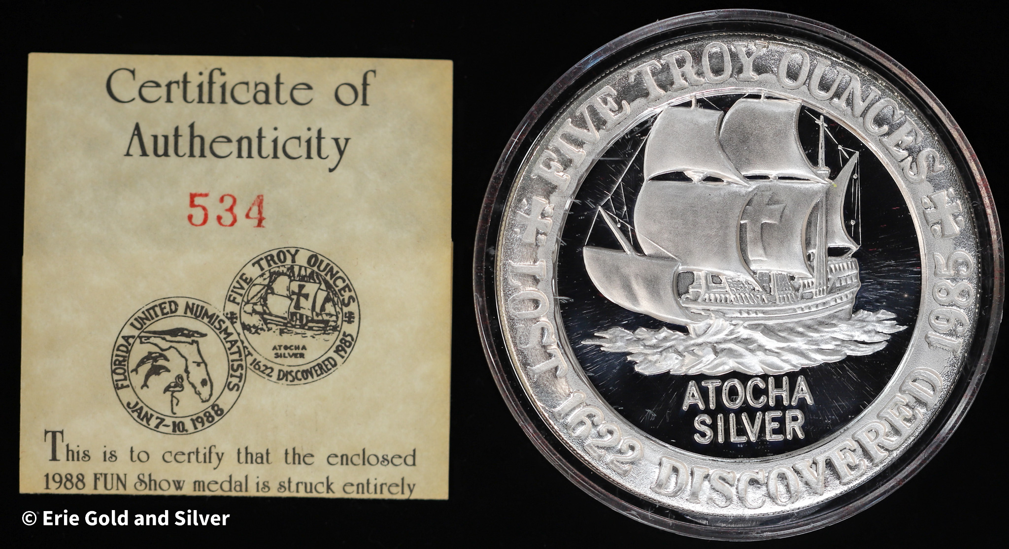 Fun Show Atocha Shipwreck 5 oz Silver Medal w/ Box & COA