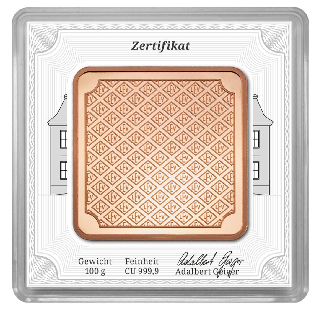 Geiger Edelmetalle 100 Gram Copper Square in Mint Assay