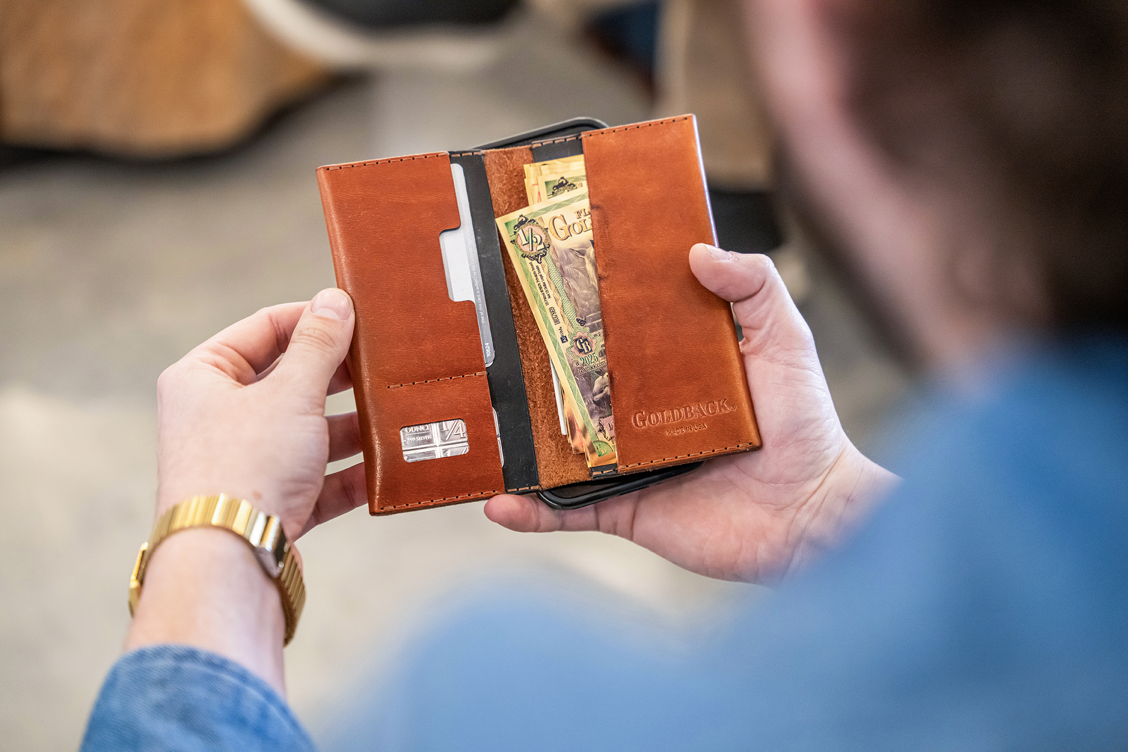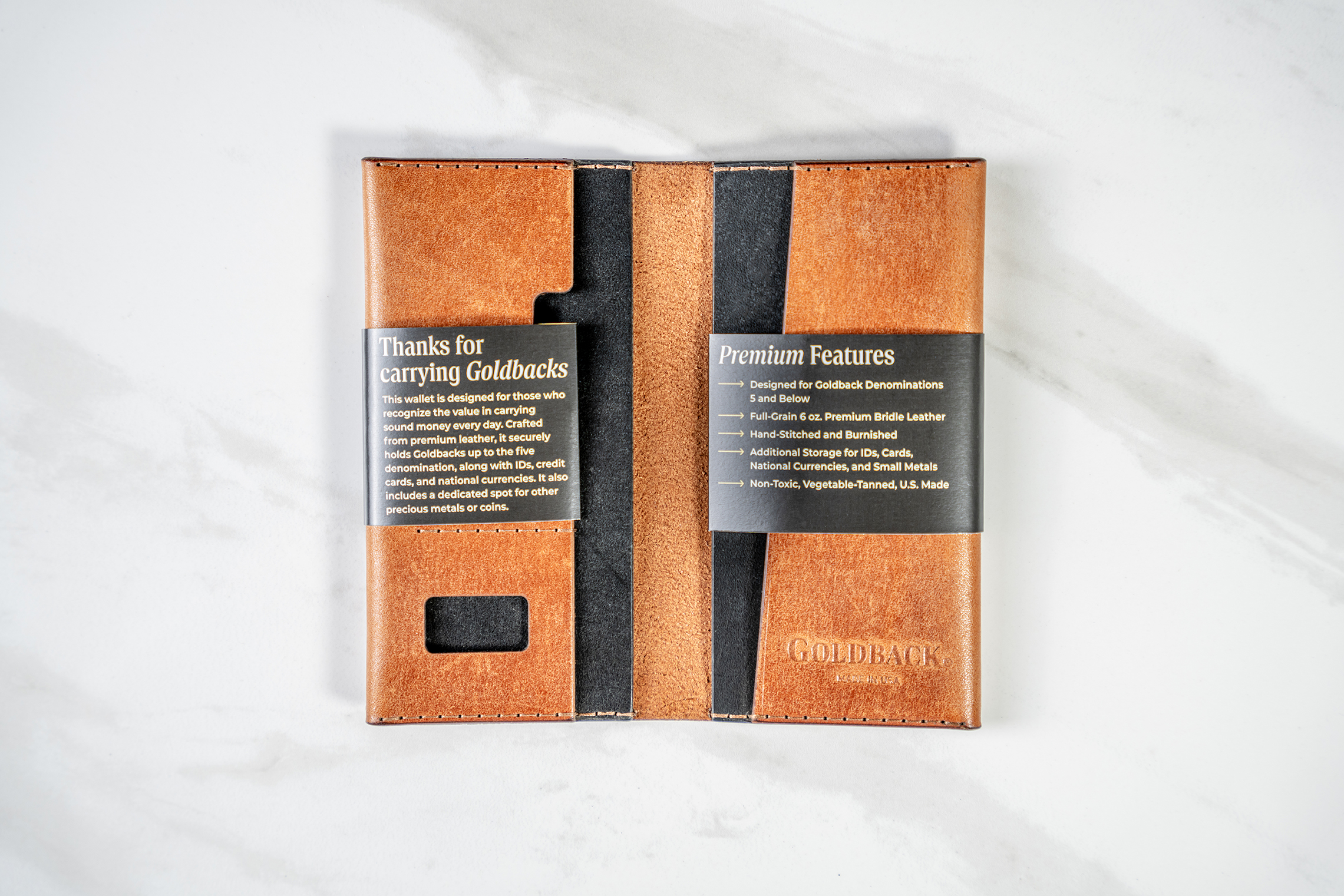 Goldback-Specific Design – Custom pockets fit denominations 5 and smaller.